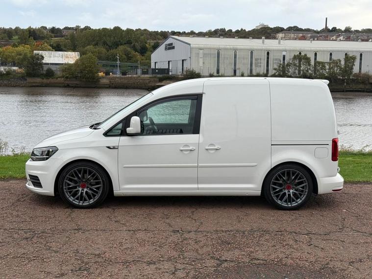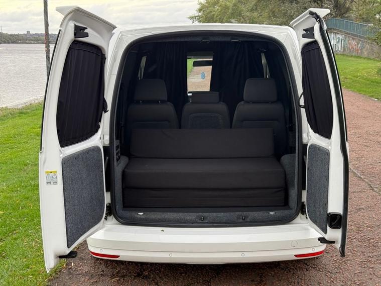 STUNNING VOLKSWAGEN CADDY WITH 18 UPGRADED ALLOY WHEELS, REAR PARKING SENSORS, MULTI FUNCTIONING STEERING WHEEL, CRUISE CONTROL, AIR CON, APPLE CAR PLAY, UPGRADED MEDIA UNIT, 5 SEATS, FULLY CARPETED REAR WITH SPOT LIGHTS, CURTAINS, BED AND LOTS MORE, THIS VAN COMES WITH A FULL SERVICE HISTORY AND IS PREPPED AND READY TO DRIVE AWAY TODAY.