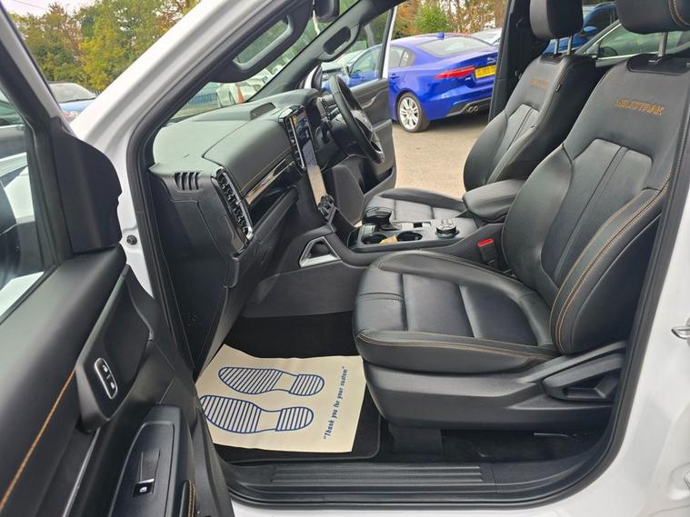 This 2023 Ford Ranger TD Wildtrak presents an exceptional opportunity with its remarkably low mileage of just 14, 500 miles and a single owner from new. This Four Wheel Drive pickup is powered by an efficient 2.0L Diesel engine, meeting Euro 6 emissions standards. It boasts a range of desirable features, including a heated steering wheel for those colder mornings, passive keyless entry and start for ultimate convenience, and advanced LED reflector headlights for superior visibility. The Technology Pack 20 enhances your driving experience with adaptive cruise control, automatic headlights, and comprehensive front and rear parking sensors complemented by a rear camera. Further enhancing comfort and practicality, the Front Seat Pack 7 ensures both driver and passenger can enjoy heated seats. These carefully selected features, combined with the vehicles excellent provenance, demonstrate a level of specification and care that sets this Ranger apart from others on the market. This Wildtrak variant offers a compelling blend of robust capability and refined comfort, making it an ideal choice for both work and leisure.