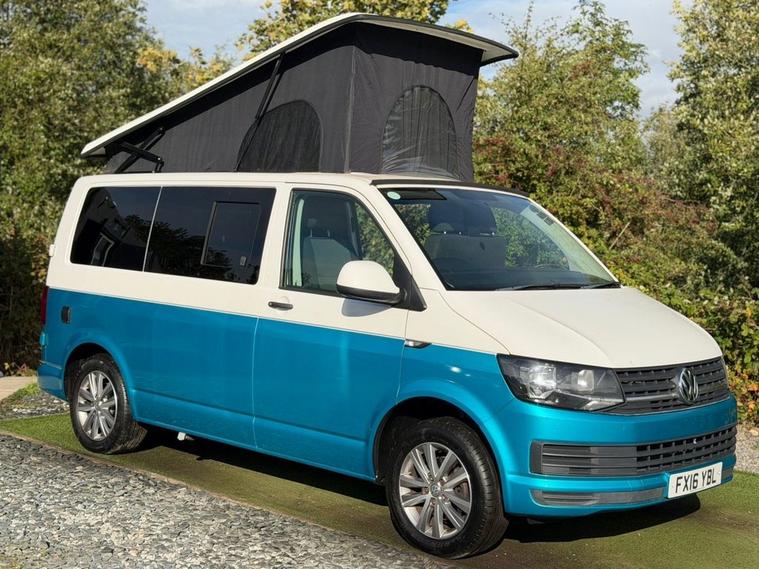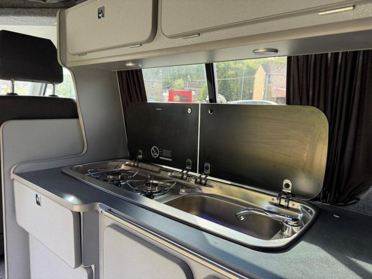 VOLKSWAGEN T6 CAMPERVAN - DAB - BLUE TOOTH - REAR SENSORS - PROFESSIONAL CAMPERVAN CONVERSION INCLUDING POP TOP ROOF - GAS HOBS - FRIDGE - WATER SYSTEM WITH SINK - CUPBOARDS - ROCK AND ROLL BENCH SEAT - BED - SWIVEL FRONT BENCH SEAT - VINYL HALF WRAP .
