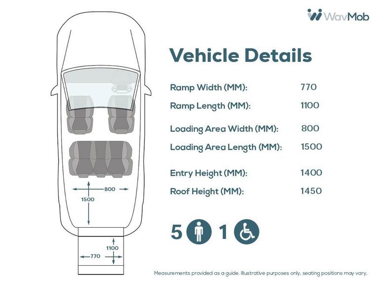 This Allied Mobility converted Volkswagen Caddy Wheelchair Accessible Vehicle (WAV) has 5 Seats (2 Front and 3 Rear). Equipment includes Fold Flat Wheelchair Ramp, Electric Winch, Air Conditioning, Electric Front Windows, Electric Adjustable Wing Mirrors, Power Steering, Remote Central Locking, Tinted Rear Windows.