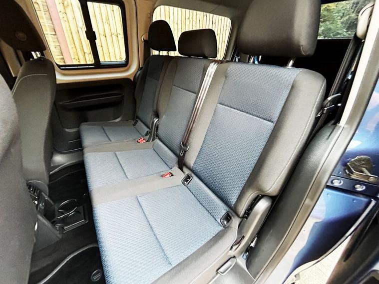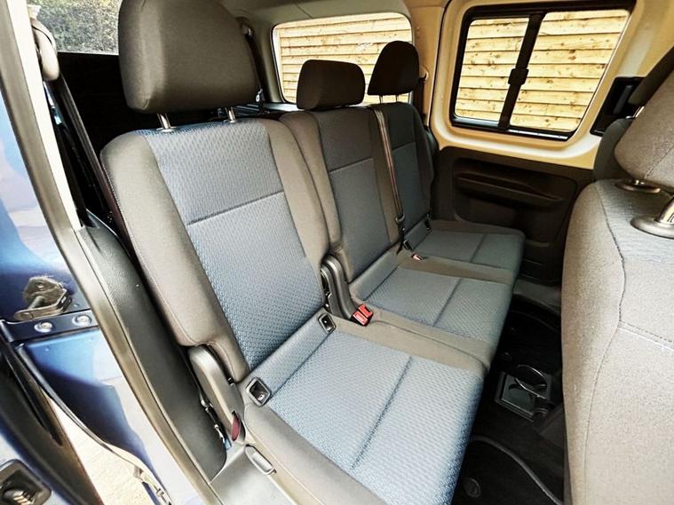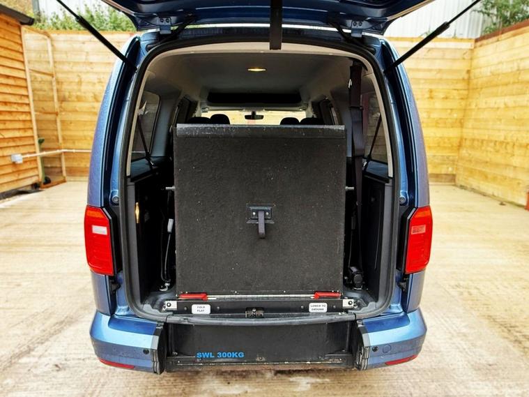 This Allied Mobility converted Volkswagen Caddy Wheelchair Accessible Vehicle (WAV) has 5 Seats (2 Front and 3 Rear). Equipment includes Fold Flat Wheelchair Ramp, Electric Winch, Air Conditioning, Electric Front Windows, Electric Adjustable Wing Mirrors, Power Steering, Remote Central Locking, Tinted Rear Windows.