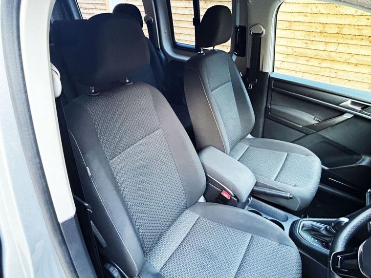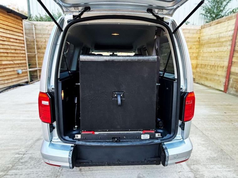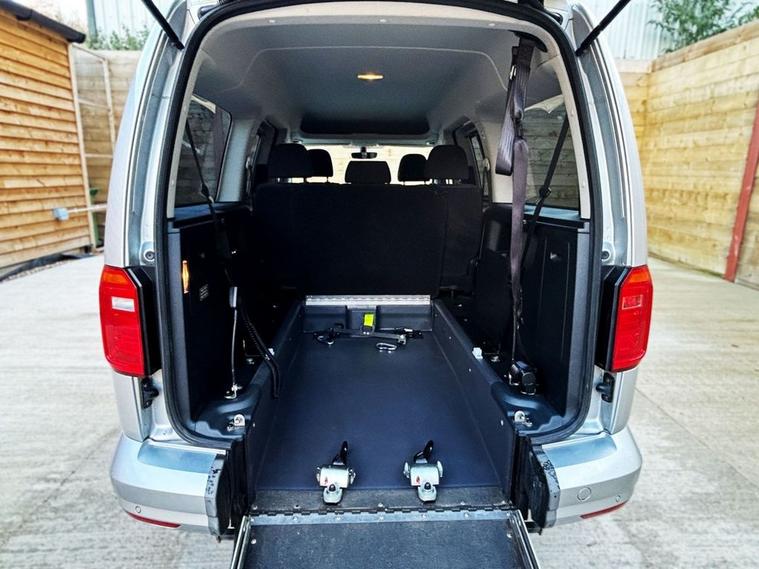 This Allied Mobility converted Volkswagen Caddy Wheelchair Accessible Vehicle (WAV) has 5 Seats (2 Front and 3 Rear). Equipment includes Fold Flat Wheelchair Ramp, Electric Winch, Air Conditioning, Electric Front Windows, Electric Adjustable Wing Mirrors, Power Steering, Remote Central Locking, Tinted Rear Windows.