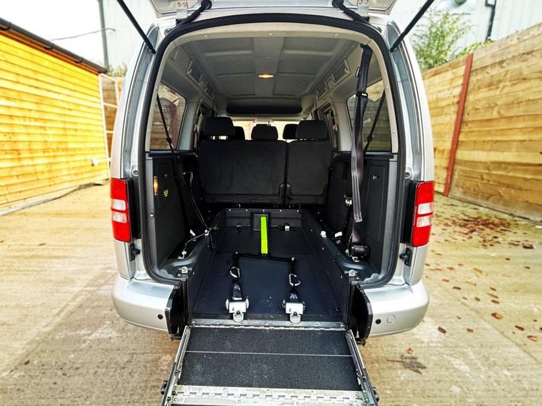 This Allied Mobility converted Volkswagen Caddy Wheelchair Accessible Vehicle (WAV) has 5 Seats (2 Front and 3 Rear). Equipment includes Fold Flat Wheelchair Ramp, Electric Winch, Air Conditioning, Electric Front Windows, Electric Adjustable Wing Mirrors, Power Steering, Remote Central Locking, Tinted Rear Windows.