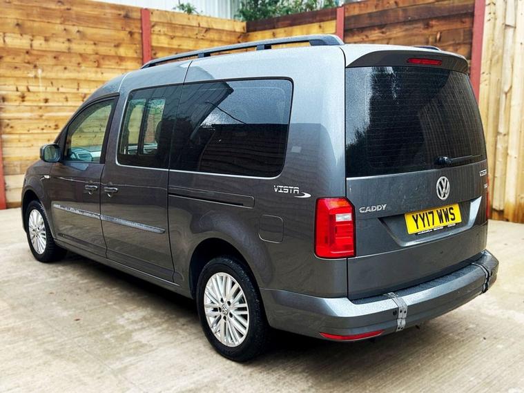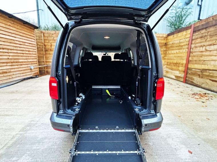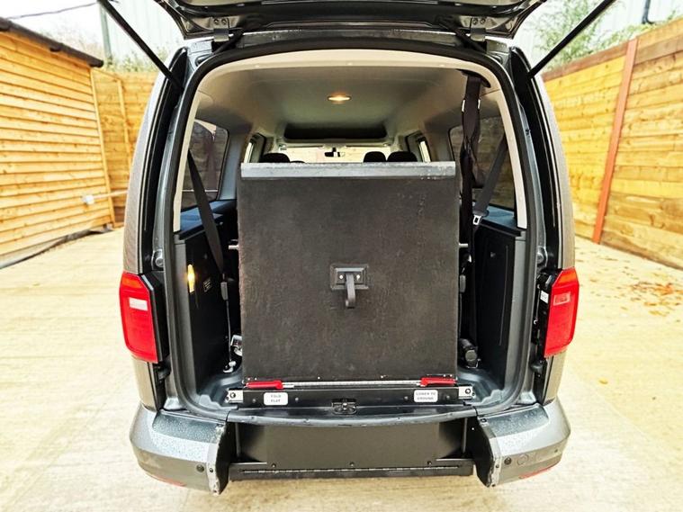 This Allied Mobility converted Volkswagen Caddy Wheelchair Accessible Vehicle (WAV) has 5 Seats (2 Front and 3 Rear). Equipment includes Fold Flat Wheelchair Ramp, Electric Winch, Air Conditioning, Electric Front Windows, Electric Adjustable Wing Mirrors, Power Steering, Remote Central Locking, Tinted Rear Windows.