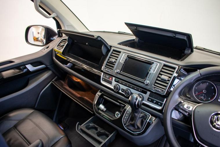 2018 18 Volkswagen Caravelle 2.0 TDI 150ps DSG Executive, finished in Starlight Blue Metallic with Titanium Black Nappa Leather interior. As an Executive model this comes with a fantastic level of specification including Discover Media Satellite Navigation System, Electric Drivers Seat with Memory Function, App Connect for Apple CarPlay / Android Auto, Twin Electric Sliding Doors, 17-inch Devonport Alloy Wheels, Heated Front Seats, DAB Radio, Cruise Control, Front & Rear Parking Sensors, Bluetooth Interface, Heated Electric Mirrors, Leather Multifunction Steering Wheel, Heated Windscreen, Automatic 3 Zone Climate Control and much more. Supplied with full service history carried out at 13757, 20143 and 27170 miles.