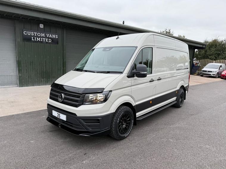 25 REG VOLKSWAGEN CRAFTER COMMERCE PLUS MWB 2.0TDI 140PS BRAND NEW, 220 DELIVERY MILES, 2 KEYS, 3 YEAR WARRANTY AIR CONDITIONING, ELECTRIC WINDOWS, ELECTRIC HEATED MIRRORS, FRONT AND REAR PARK AID, BIG SCREEN, APPLE CAR PLAY, MULTI FUNCTION STEERING WHEEL, CRUISE CONTROL, CAPTIN DRIVERS SEAT, REVERSE CAMARA, HEATED WINDSCREEN. BRAND NEW 17 SWAMPER WHEELS WITH LOAD RATED TYRES, FRONT AND REAR RALLY FLAPS, BUMPER PROTECTOR, FRONT SPLITTER, BONNET PROTECTOR, RUNNING BOARDS FULL V5 PRESENT 3 YEAR WARRANTY PART EXCHANGE WELCOME FINANCE AVAILABLE ALL MAJOR CARDS ACCEPTED FREE UK DELIVERY