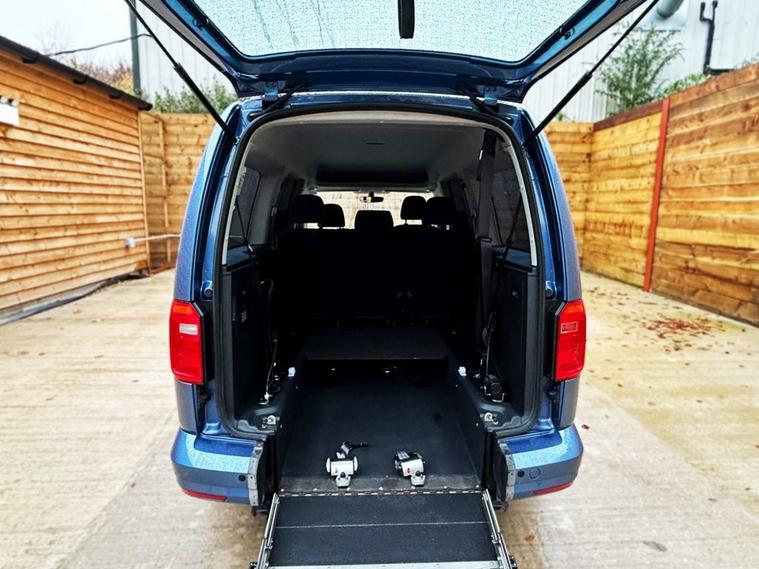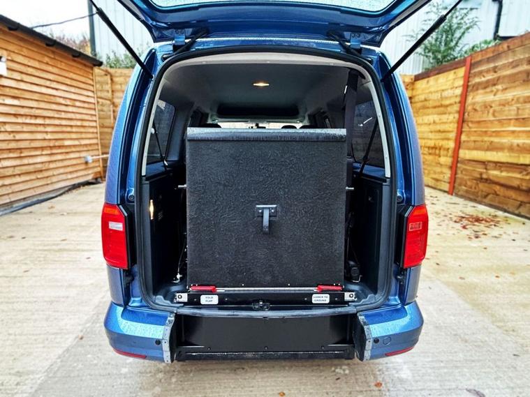 This Allied Mobility converted Volkswagen Caddy Wheelchair Accessible Vehicle (WAV) has 5 Seats (2 Front and 3 Rear). Equipment includes Fold Flat Wheelchair Ramp, Electric Winch, Air Conditioning, Electric Front Windows, Electric Adjustable Wing Mirrors, Power Steering, Remote Central Locking, Tinted Rear Windows.