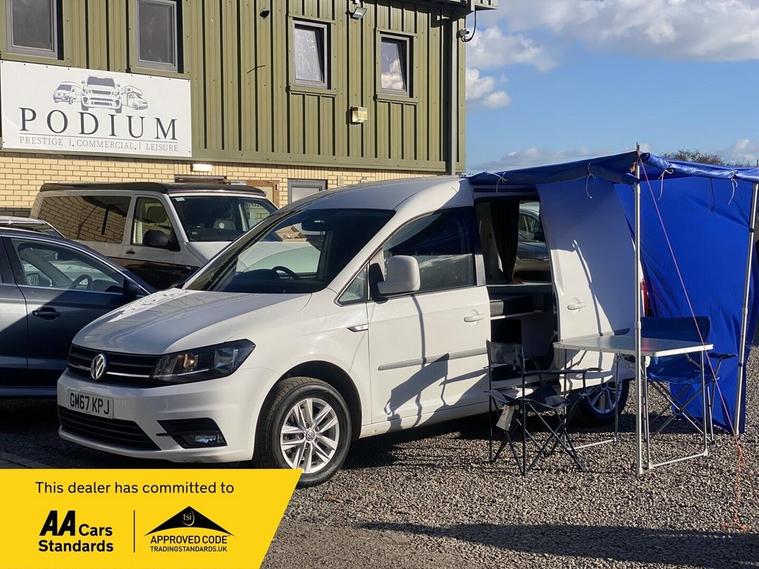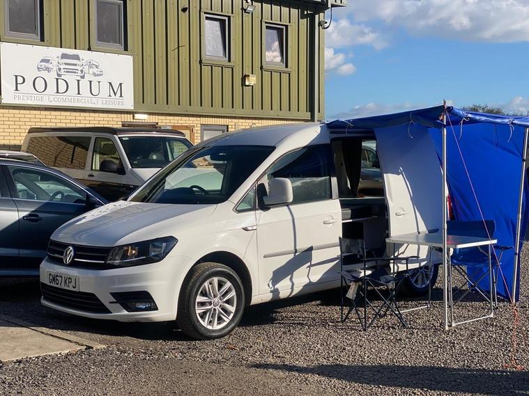 WE ARE DELIGHTED TO PRESENT A VW CADDY CONVERTED FOR CAMPING NEEDS, COZY SLEEPING FOR TWO WITH A VERY SPACIOUS FIXED DOUBLE BED WITH 2 SEAT BELTS, ALL READY TO HIT THE ROAD FOR THE ADVENTURE WITH A RELIABLE ENGINE AND GEARBOX, LEAISURE BATTERY INSTALLED, DIESEL HEATER, 2-SEAT BELTS, 2 BERTH, IT COMES WITH A PORATBLE AWNING, PORTABLE STOVE, A LOT OF STORAGE UNDER THE BED, TABLES AND CHAIRS ALSO COME WITH IT, REAR WINDOWS, RECENTLY SERVICED, SERVICED HISTORY WITH A FEW INVOICES, CLUTCH REPLACED AT 86K IN 2024, TIMING BELT REPLACED AT 104K, 3 PREVIOUS OWNERS, 2 KEYS, NAVIGATION, AIR CONDITIONING, CRUISE CONTROL REAR PARKING SENSORS. Step into the world of Podium PCL, where quality, trust, and expertise come together to create a refined vehicle-buying experience. We proudly showcase a wide selection of over 200 meticulously handpicked vehicles, including Cars, SUVs, Vans, Motorhomes, and Campervans. Each vehicle is carefully sourced by our expert purchasing team, backed by over 12 years of industry experience, and undergoes thorough checks to ensure the highest standards. All our vehicles are HPI clear and supported by the AA Dealer Promise, offering complete peace of mind with every purchase. Enjoy the added benefit of 12 months of complimentary AA breakdown cover, along with a 3-month warranty included within the advertised price, extendable up to 3 years for long-term reassurance. We also offer swift vehicle deliveryfree within a 60-mile radius and just £2 per mile thereafter (Scotland rates may vary). Once payment is received, we aim to deliver your vehicle within 48 hours. Visit Podium PCL and discover automotive excellence today. Come See Us: The Old Wood Yard Forest Road, Hanslope Milton Keynes, MK19 7DE 01908906243 ( WHATSAPP) INFO dealer's website dealer's website Opening Hours MonSat: 9:00 AM 6:00 PM Sun: 9:30 AM 4:00 PM Podium PCL Where Trust Drives Performance