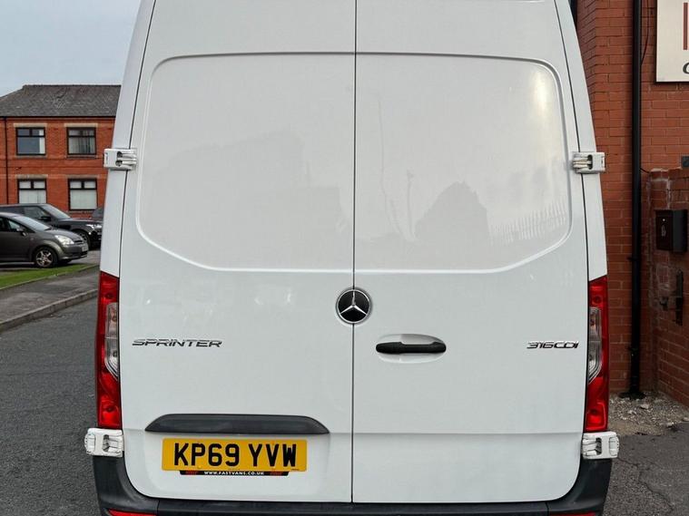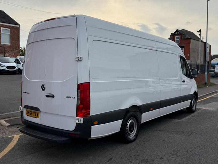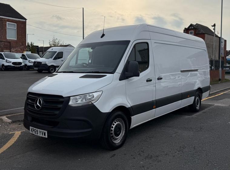Mercedes Sprinter 316 CDI, Euro 6, LWB, High Roof, 2019 69 Reg, 100 000 Miles (Warranted), Cruise Control, Multi-Functional Steering, On Board Computer, Bluetooth Telephone Kit, 160 BHP, 3 Seater Cab, Side Loading Door, Central Locking, Electric Windows, 6 Speed, Power Assisted Steering, Immobiliser, Apple Car Play, DAB Radio, Drivers Airbag, Head Restraints, Height Adjustable Drivers Seat, Cloth Seat Trim, Factory Fitted Steel bulkhead, Ply lined, ESP, ABS, Traction Control.