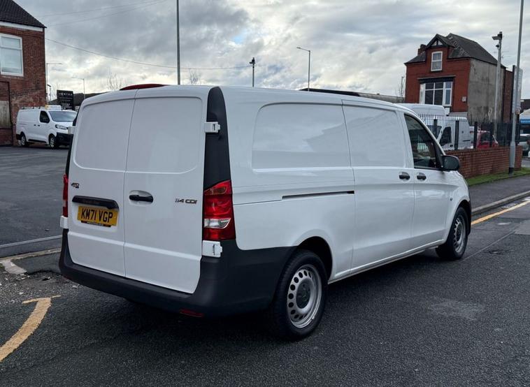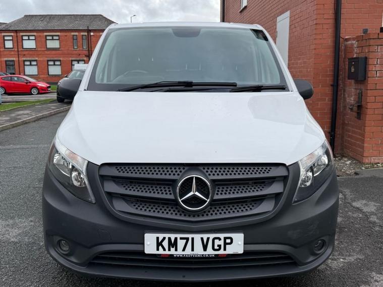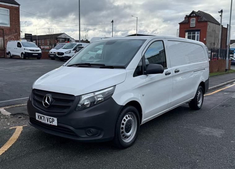 Mercedes Vito 116 CDI, Euro 6, Progressive, XLWB, 2021 71 Reg, 65 000 Miles (Warranted), Cruise Control, Multi-Functional Steering, On Board Computer, Bluetooth Telephone Kit, 150 BHP, 3 Seater Cab, Twin Side Loading Door, Central Locking, Electric Windows, 6 Speed, Power Assisted Steering, Immobiliser, Apple Car Play, DAB Radio, Drivers Airbag, Head Restraints, Height Adjustable Drivers Seat, Cloth Seat Trim, Factory Fitted Steel bulkhead, Ply lined, ESP, ABS, Traction Control.
