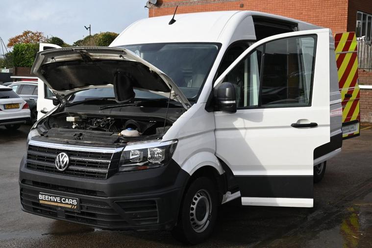DRIVE AWAY TODAY OR HOME DELIVERY TO YOUR DOORSTEP FINANCE & PART EXCHANGE ARRANGED ONLINE** 7 DAY MONEY BACK GUARANTEE** Lovely Volkswagen Crafter 2.0 tdi cr35 trendline panel van in white with full vw dealer service history also has had timing belt and waterpump done vw touchscreen sound system dab radio bluetooth media usb cloth seats with driver armrest electric heated door mirrors front and rear parking aid sensors air condtioning side door panel rear tow bar steel rims