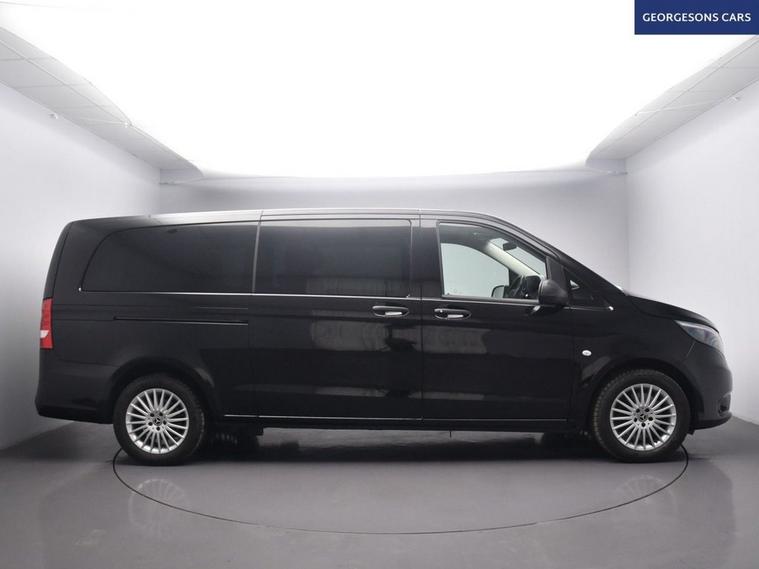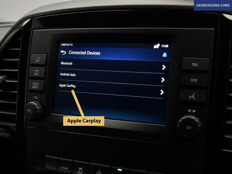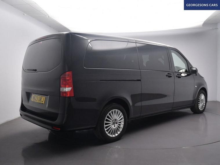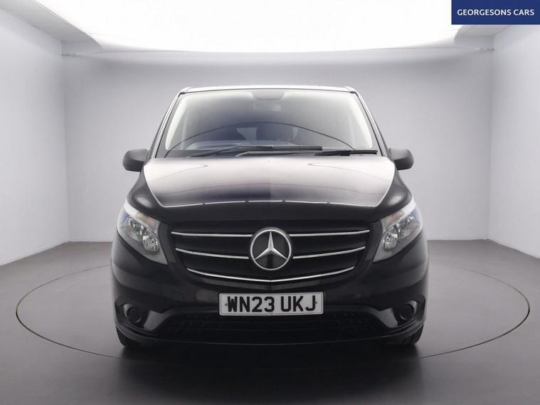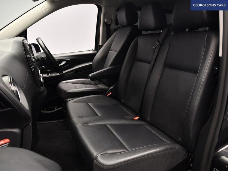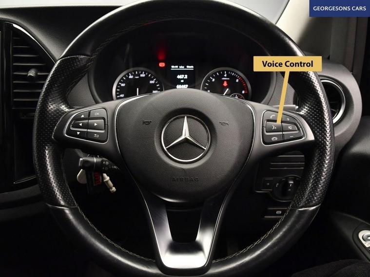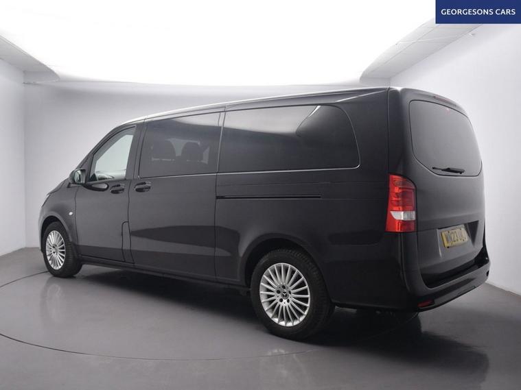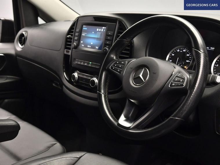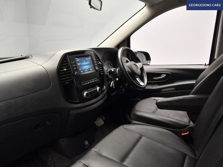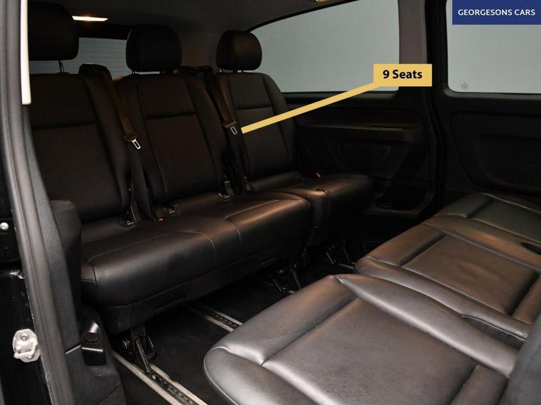 The Mercedes-Benz Vito 2.0 114 CDI Select Tourer combines a responsive 2.0-litre turbo diesel engine with 114hp, delivering 0-62mph in 13.5 seconds and up to 41.5mpg in this rear-wheel-drive setup with a smooth 7-speed G-Tronic automatic transmission, featuring 9-seat flexibility with sliding doors for easy access. The Select Tourer trim offers practical luxury with 16-inch alloy wheels and a spacious interiorperfect for family adventures or group outings. Navigate effortlessly with integrated satellite navigation, Apple CarPlay, Bluetooth, and DAB radio, ensuring seamless connectivity on every journey. Stay comfortable with climate control, offering personalized cooling year-round. Cruise control with speed limiter enhances relaxation on highways, while selectable drive modes provide tailored performance, whether for efficiency or dynamic driving. Start-stop technology improves fuel economy in traffic. The spacious five-door double cab design includes 9 seats and ample load space for family or group travel.