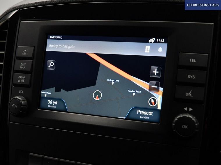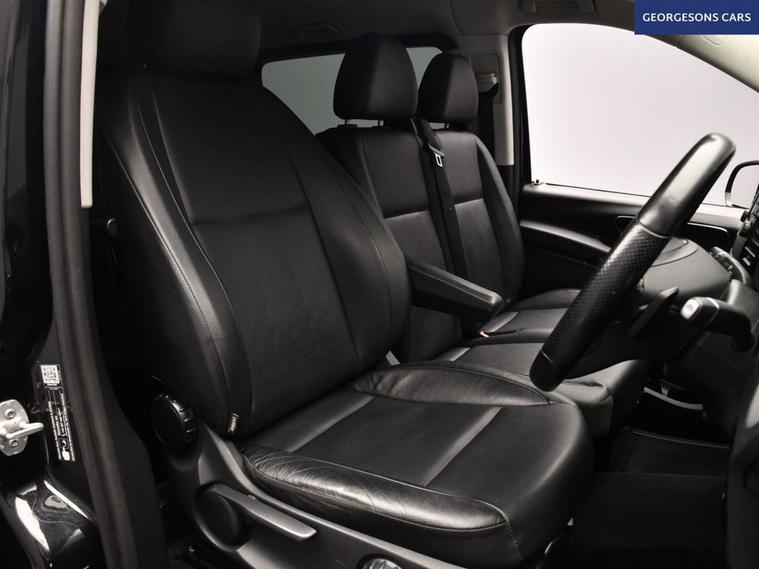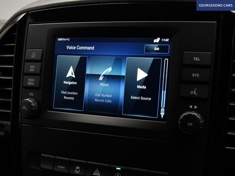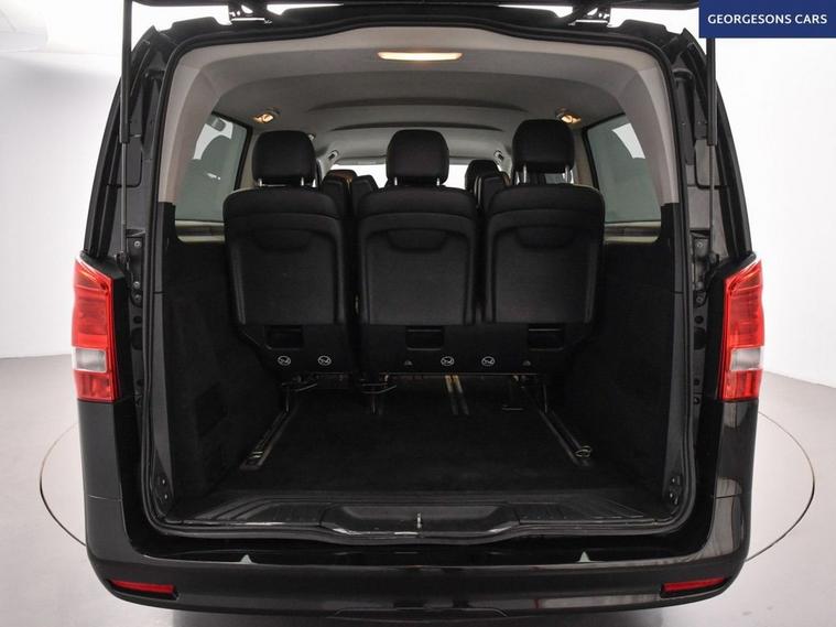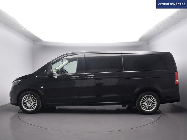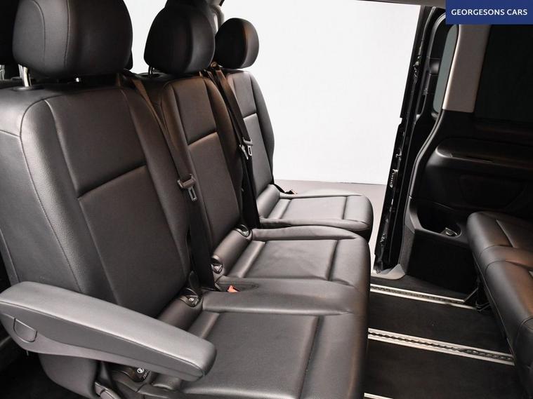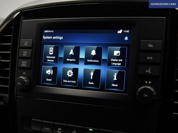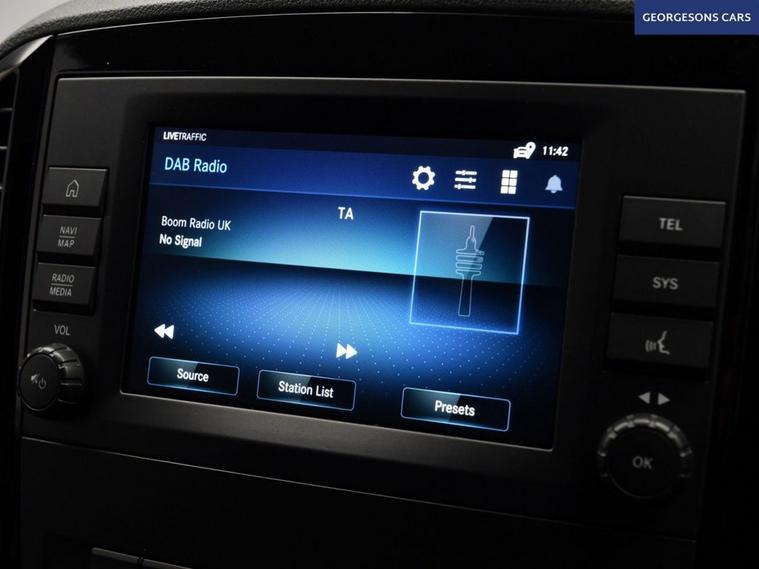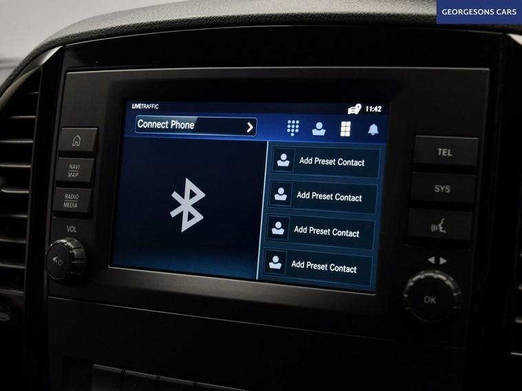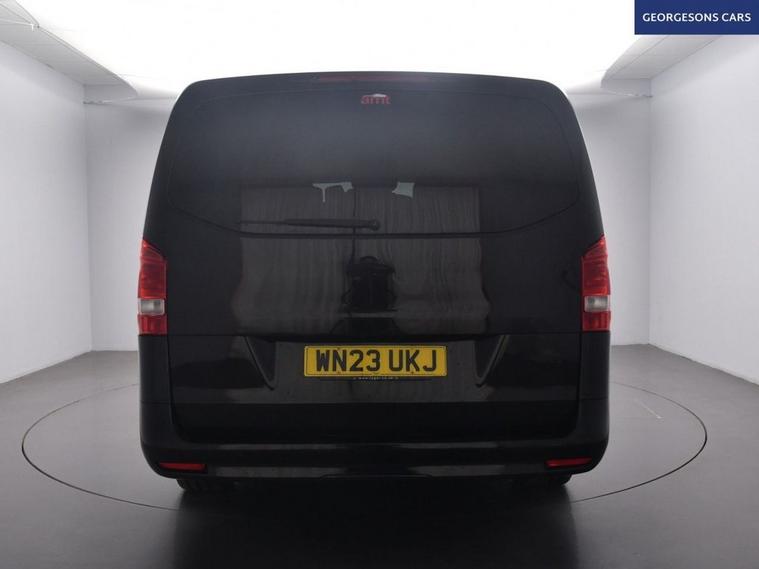 The Mercedes-Benz Vito 2.0 114 CDI Select Tourer combines a responsive 2.0-litre turbo diesel engine with 114hp, delivering 0-62mph in 13.5 seconds and up to 41.5mpg in this rear-wheel-drive setup with a smooth 7-speed G-Tronic automatic transmission, featuring 9-seat flexibility with sliding doors for easy access. The Select Tourer trim offers practical luxury with 16-inch alloy wheels and a spacious interiorperfect for family adventures or group outings. Navigate effortlessly with integrated satellite navigation, Apple CarPlay, Bluetooth, and DAB radio, ensuring seamless connectivity on every journey. Stay comfortable with climate control, offering personalized cooling year-round. Cruise control with speed limiter enhances relaxation on highways, while selectable drive modes provide tailored performance, whether for efficiency or dynamic driving. Start-stop technology improves fuel economy in traffic. The spacious five-door double cab design includes 9 seats and ample load space for family or group travel.