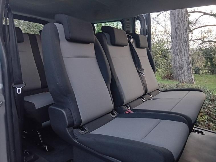 Nine Seats Long Wheelbase XL Air Conditioning Cruise Control with Speed Limiter Bluetooth Connectivity 16in Steel Wheels with Centre Caps Airbags - Driver and Front Passengers Curtain and Side Impact Airbags Anti-Theft Spare Wheel Cradle Coolant Temperature Warning Light Daytime Running Lights Door Mirrors - Electrically Adjustable-Heated Driver Seat - Reach - Backrest Recline - Padded Head Restraint Drivers and Front Passengers Airbags ESP - Electronic Stability Programme Plus with Traction Control Electric Pack Electric Windows - Front with One Touch Facility Electronic Engine Deadlock Immobiliser Facia Mounted Gear Lever Floor Mounted Handbrake Lever Four Speakers Four-Channel Anti-Lock Braking System - ABS Fuel Economy Gauge Fuel Gauge with Low Fuel Warning Light Glazed Tailgate with Heated Window and Wash-Wipe Facility Hazard Warning Lights Head Restraints - Height Adjustable Padded Height Adjustable Outer Front Seatbelts High Level Brake Light Hill Start Assist Hydraulic Power-Assisted Rack and Pinion System with Energy Absorbing Steering Column Inertia-Reel Lap and Diagonal Seatbelts Lights On Audible Warning Lockable Fuel Filler Cap Multi-Function Trip Computer Nearside and Offside Sliding Side Access Doors with Fixed Windows Radio BT Reach and Rake Adjustable Steering Wheel Rear Fog Lights Rear Parcel Shelf Remote Control Central Deadlocking Rev Counter Roof-Mounted Flexible Aerial Seats - Dual Front Passengers Bench with Underseat Storage Second Row - Three Passenger Foldable 60-40 Split Bench Seat - Third Row Three Passenger Fixed Bench Seat Selective Door Locking Side Repeat Indicators Speedometer Steering Column Lock Steering Column Mounted Audio Controls Stereo Radio - AM-FM TPMS - Tyre Pressure Monitoring System Third-Row Three-Passenger Foldable Bench Seat Twin Reversing Lights Tyre Inflation Kit - in Lieu of Spare Wheel
