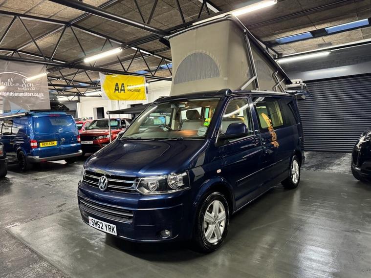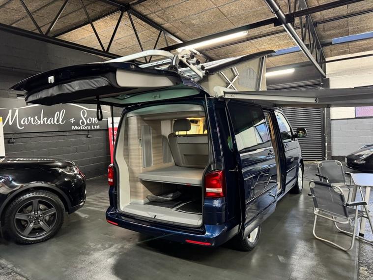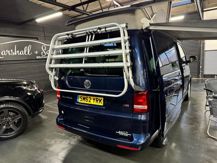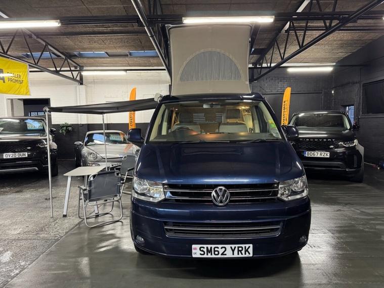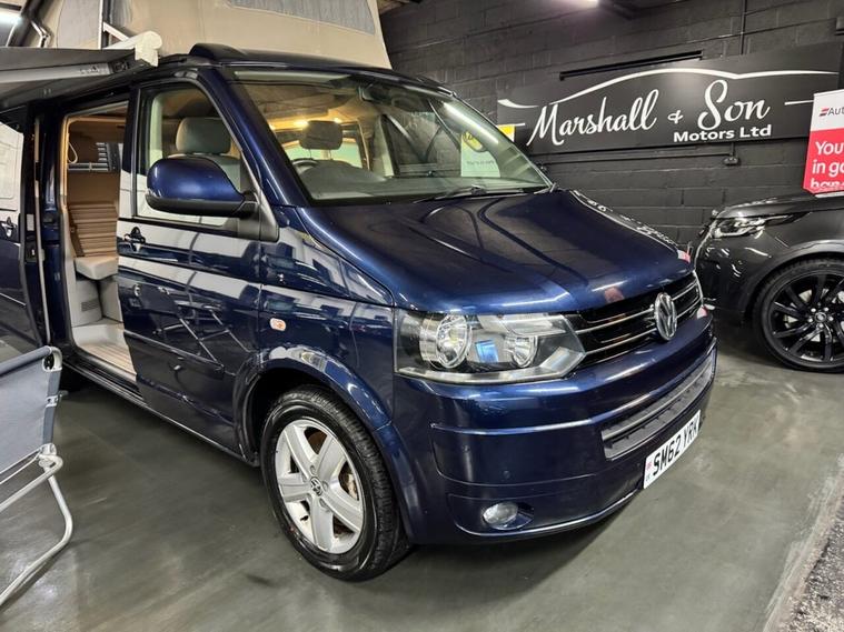 2013 Volkswagen California 2.0 TDI SE 4 Berth Camper (Night Blue Metallic) One Owner from New Exceptional Example with Comprehensive Service History A beautifully maintained and highly sought-after Volkswagen California SE, finished in elegant Night Blue Metallic (LH5X). This cherished, one-owner vehicle has covered just 69, 000 miles and benefits from a comprehensive service record nine services in total (seven with Volkswagen main dealers and two by reputable independents). This California SE offers the perfect combination of everyday practicality and touring comfort, making it ideal for family adventures or weekend escapes. Key Features: 4 Berth Configuration ideal for couples or small families Electric Pop-Top Roof providing effortless setup and extra sleeping space Twin Gas Hob, Fridge, and Sink Unit a fully equipped kitchenette for life on the road Auxiliary Heating and Cabin Heater for year-round comfort Rock and Roll Bed with matching upholstery Heated Front Seats and Captain-Style Swivel Seats (Driver and Passenger) Factory-Fitted 4-Bike Rack perfect for active lifestyles Roll-Out Awning for added shade and shelter Integrated Blinds and Fly Nets throughout Interior Lighting Package and Electric Hook-Up Point Stylish Alloy Wheels enhancing the overall appearance Lovingly cared for and exceptionally well-specified, this Volkswagen California SE represents an outstanding opportunity to own one of the most versatile and desirable campervans on the market.