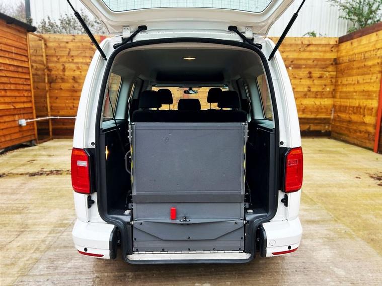 This TBC Mobility converted Volkswagen Caddy Wheelchair Accessible Vehicle (WAV) has 5 Seats (2 Front and 3 Rear). Equipment includes Wheelchair Ramp, Air Conditioning, Electric Front Windows, Electric Adjustable Wing Mirrors, Power Steering, Remote Central Locking, Tinted Rear Windows.