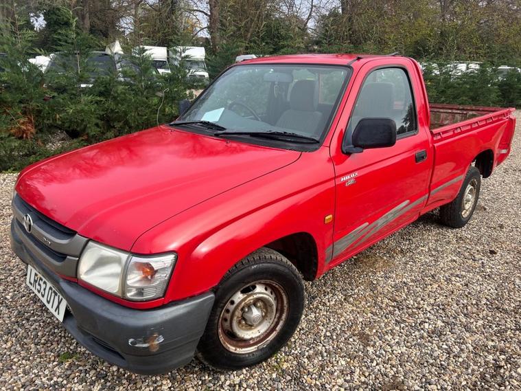 TOYOTA HILUX 2.5 DIESEL 240 PICKUP TRUCK 1 TON 2 WHEEL DRIVE ONLY DONE 91321 MILES WITH NO VAT TO PAY, RED JUST TAKEN IN PX CHANGE HAS GOT A FEW DENTS NEEDS AN MOT CLEARING AS A TRADE SALE STARTS AND DRIVES GRAB A BARGAIN NO WARRANTY TRADE TO TRADE SALE ANY INSPECTION WELCOME GRAB A BARGAIN LOW MILAGE HILUX WITH NO VAT TO PAY,