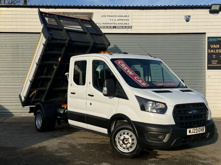 2023 Ford Transit Leader Crew cab tipper, 1 owner, 7 seats, euro 6, this truck has been very well maintained and boasts full service history, air con, security locks and tow bar. Before leaving SMC VAN SALES this truck will go through a full pre delivery inspection for your peace of mind. Walk around video available on our website.