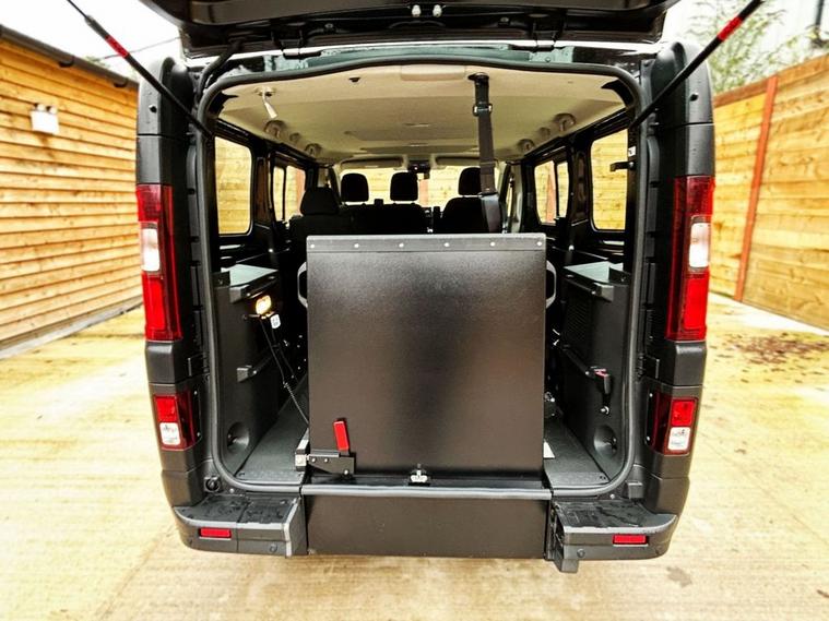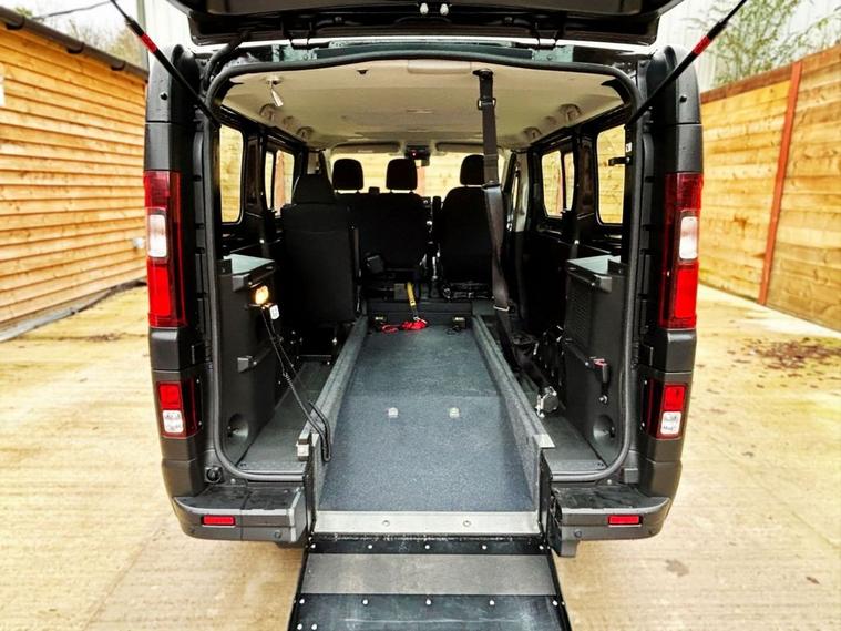 This Gowrings Mobility converted Renault Trafic Wheelchair Accessible Vehicle (WAV) has 4 Seats (3 Front and 1 Rear). Equipment includes Wheelchair Ramp, Electric Winch, Air Conditioning, Electric Front Windows, Electric Adjustable Wing Mirrors, Power Steering, Remote Central Locking, Tinted Rear Windows.