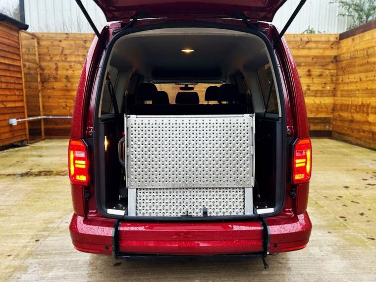 This Automotive Group converted Volkswagen Caddy Wheelchair Accessible Vehicle (WAV) has 5 Seats (2 Front and 3 Rear). Equipment includes Wheelchair Ramp, Electric Winch, Air Conditioning, Electric Front Windows, Electric Adjustable Wing Mirrors, Power Steering, Remote Central Locking, Tinted Rear Windows.