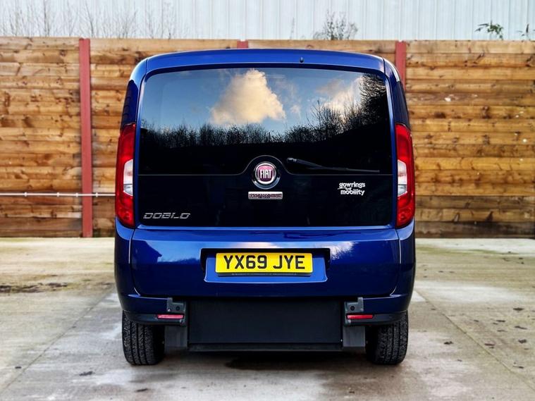 This Gowrings Mobility converted Fiat Doblo Wheelchair Accessible Vehicle (WAV) has 4 Seats (2 Front and 2 Rear). Equipment includes Wheelchair Ramp, Electric Winch, Air Conditioning, Electric Front Windows, Electric Adjustable Wing Mirrors, Power Steering, Remote Central Locking, Tinted Rear Windows.