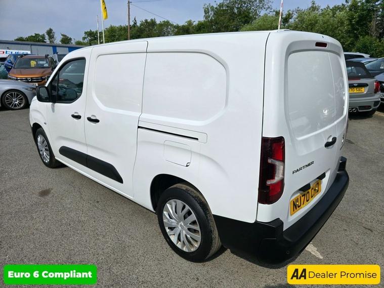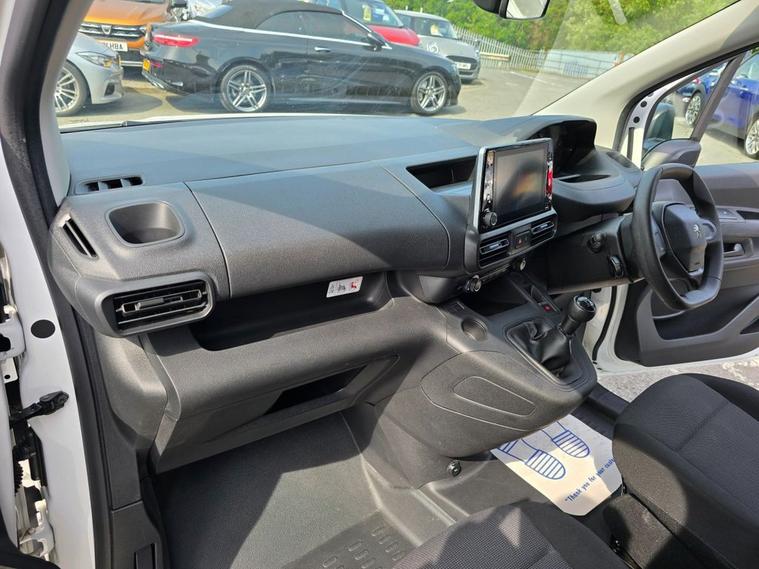 With only one owner from new, this 2020 Peugeot Partner Professional is a reliable and well-maintained van, a 5 Seater crew cab panel van , with its 1.5L diesel engine and Euro 6 emission class, is the BlueHDi 950 Professional Long Panel Van LWB Euro 6 6dr derivative. The Professional trim includes practical features such as offside and twin sliding side doors, height-adjustable halogen headlights with automatic illumination and daytime running lights, and air conditioning. The 8in capacitive colour touchscreen with Connect DAB radio, MirrorScreen, Bluetooth, USB socket, and Aux provide modern connectivity. The MOT is valid until September 2025. This Partner stands out with its impressive 56 mpg fuel economy, meaning fewer trips to the pump and more money in your pocket. The low CO2 emissions mean you'll be contributing to a cleaner environment. The generous 4400 litres of cargo volume ensures you have ample space for all your equipment and goods.