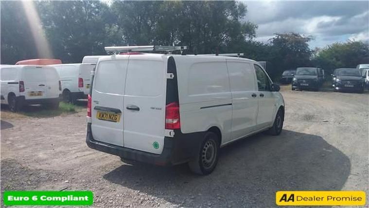 This 2021 Mercedes-Benz Vito boasts a full service history, with its last service completed on 21st October 2024 at 46, 077 miles, offering peace of mind for its next owner. This L3 Euro 6 compliant 116 CDI Progressive G-Tronic RWD model is powered by a 2.0 litre diesel engine and has had only one owner from new. Notable features include a reversing camera with rear parking assistance, the Audio 30 system which offers Android Auto, Apple CarPlay and Bluetooth connectivity, and automatic headlights thanks to the Headlight Assistant. With an impressive cargo volume of 6, 600 litres, this Vito provides ample space for your business needs, complemented by the robust 161 bhp engine. These highlights demonstrate the vehicles capability and advanced features, setting it apart from other similar models on the market. A 3 month warranty is also included, further enhancing the value and assurance provided with this well maintained Mercedes-Benz Vito.