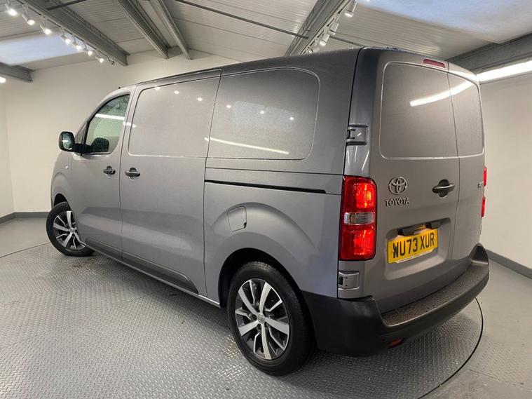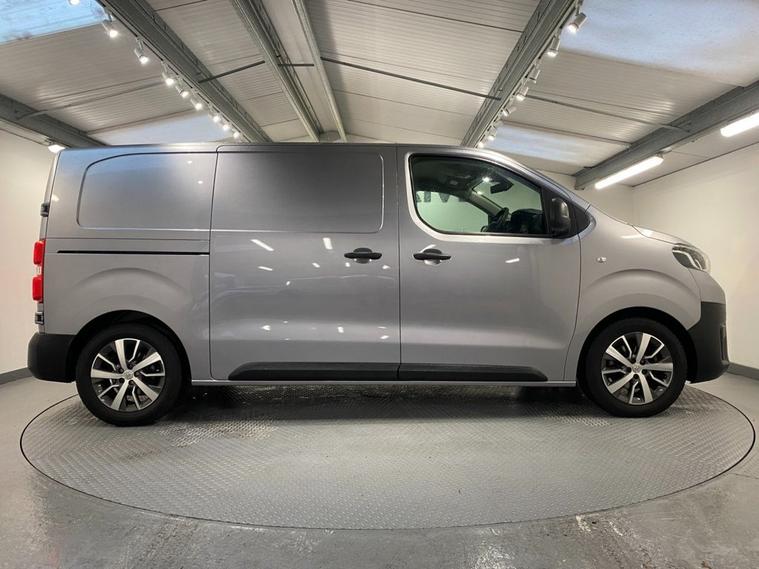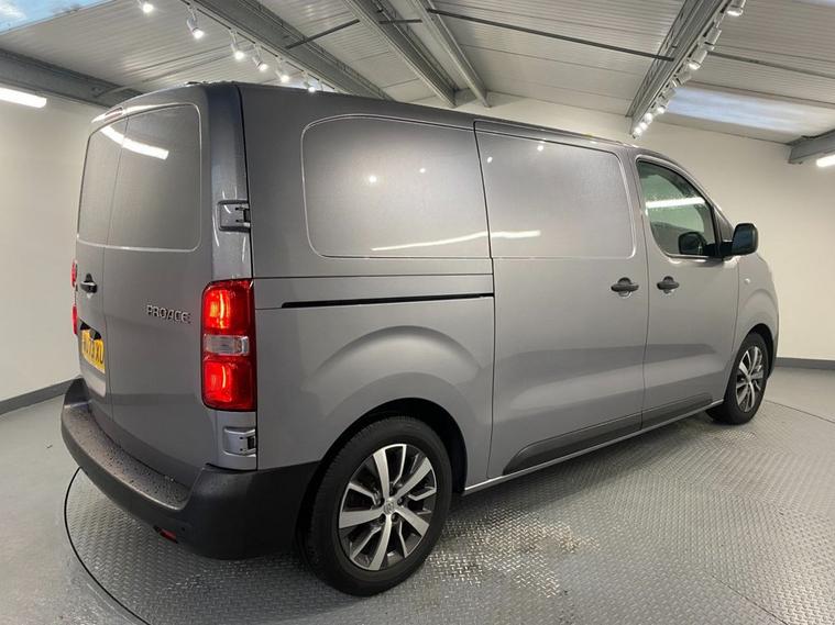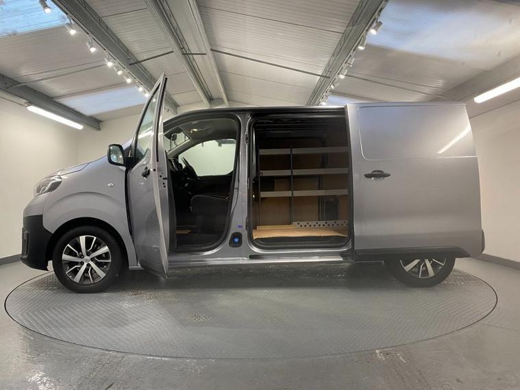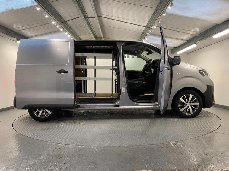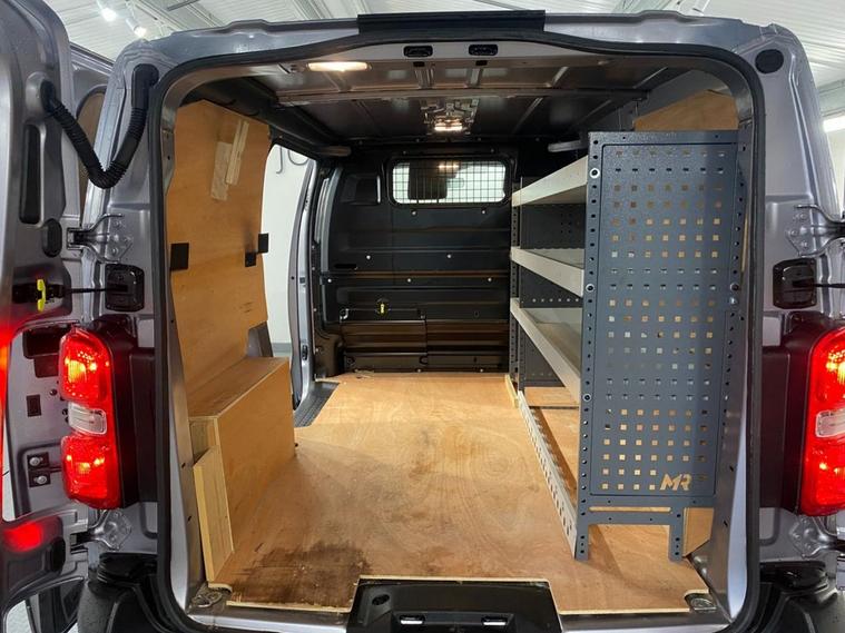 The Proace is widely praised as a practical, comfortable and dependable mid-size van offering excellent accessibility with dual side doors, good ride quality and solid safety tech (Pre-Collision, Lane Departure) making it a strong, well-equipped choice. In a sea of white vans it looks sharp in Silver Shadow metallic paint and also comes with smart 17 diamond cut alloy wheels. Access to the large cargo area is a breeze via twin sliding side doors and double barn doors at the rear with 4-level shelving offering great storage options. Theres three clean and comfortable seats up front and its a well equipped model with features including a touchscreen media system with navigation, DAB radio, Bluetooth and Apple CarPlay / Android Auto. You also get cruise control, air conditioning and rear parking sensors with audio / optical alert.