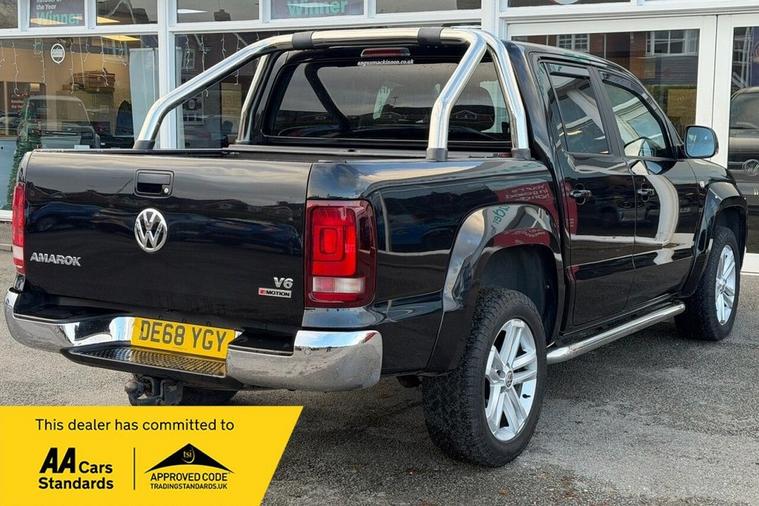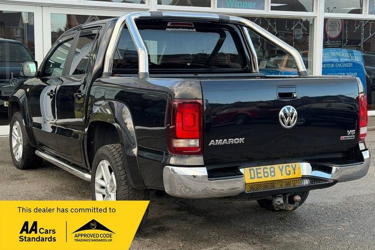 Benefitting from excellent service history, two former keepers and two keys, this 2018/68 Reg Volkswagen Amarok 3.0 TDI V6 Highline is a fantastic option for either a business or someone that would like the utility. The specification includes items like Heated Seats, Apple CarPlay, Rear Camera plus utility features such as an Off Road mode, a Lock and Roll Cover and a Towbar with electrics. This vehicle, much like our others, comes with a 3-month warranty, with the option to upgrade up to 36 months. It is also subject to our 6-month MOT and Service guarantee. ========= Specification: Bi-Xenon headlights with LED daytime running lights Vienna leather interior with heated front seats Leather multifunction steering wheel and leather-trimmed controls Climatronic dual-zone air conditioning with rear ventilation Composition Media 6.33 touchscreen with App-Connect Voice control, Bluetooth, USB and AUX connectivity Privacy glass with heat-insulating glazing Chrome rear bumper with integrated step Heated power-adjustable wing mirrors and heated washer nozzles Automatic post-collision braking and full ESP safety suite ISOFIX child-seat anchoring and curtain-side airbag protection Remote central locking with alarm, tilt sensor, and single-door unlock Lock and Roll Cover Towbar with electrics ========= Service History: 12/02/2021 - 29, 311 miles - Independent 15/12/2021 - 43, 226 miles - Independent 17/02/2023 - 61, 535 miles - Independent 01/02/2024 - 76, 100 miles - Angus MacKinnon Ltd 07/01/2025 - 86, 192 miles - Angus MacKinnon Ltd We will be carrying out an MOT on this vehicle prior to sale. =========