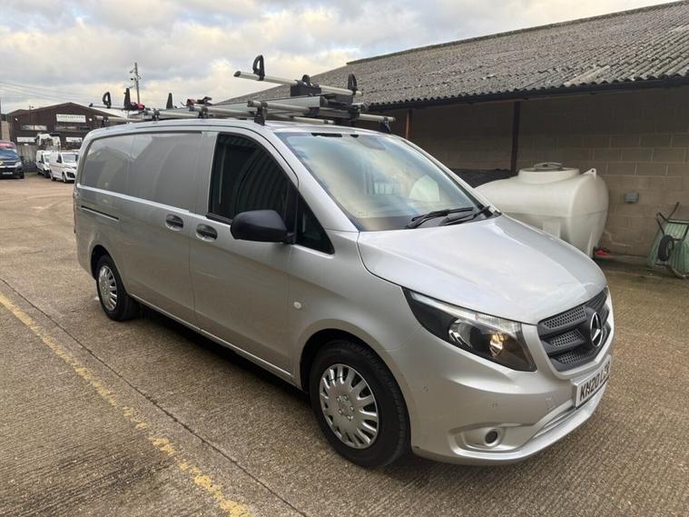 HERTS MOTORS ARE DELIGHTED TO OFFER A CHOICE OF MERCEDES BENZ VITOS 110 CDI PROGRESSIVE MODEL - LONG WHEELBASE. DIRECT FROM SKY UK. 2020 (20 REG) - 1 OWNER FROM NEW WITH FULL SERVICE HISTORY. ONLY 44, 000 MILES. . ALL THE EXTRAS - AIR CONDITIONING - APPLE CAR PLAY - ANDROID AUTO - SAT NAV - CRUISE CONTROL - PARKING SENSORS - METALLIC SILVER - COLOUR CODED FRONT BUMPER WITH FRONT FOG LIGHTS - BLUETOOTH RADIO & MORE. LONG WHEELBASE - TWIN SIDE DOORS - RHINO ROOF RACK - INTERNAL RACKING IDEAL FOR MANY TRADES BUT CAN BE REMOVED IF NOT REQUIRED. WE HAVE A CHOICE AVAILABLE - ANY QUESTIONS OR TO RESERVE PLEASE CALL DAN ON 01992692615. GREAT FINANCE OFFERS AVAILABLE! - CALL TO QUOTE / TO APPLY RAC WARRANTY INCLUDED FOR 6 MONTHS WITH OPTIONS TO EXTEND. PART EXCHANGES WELCOME.