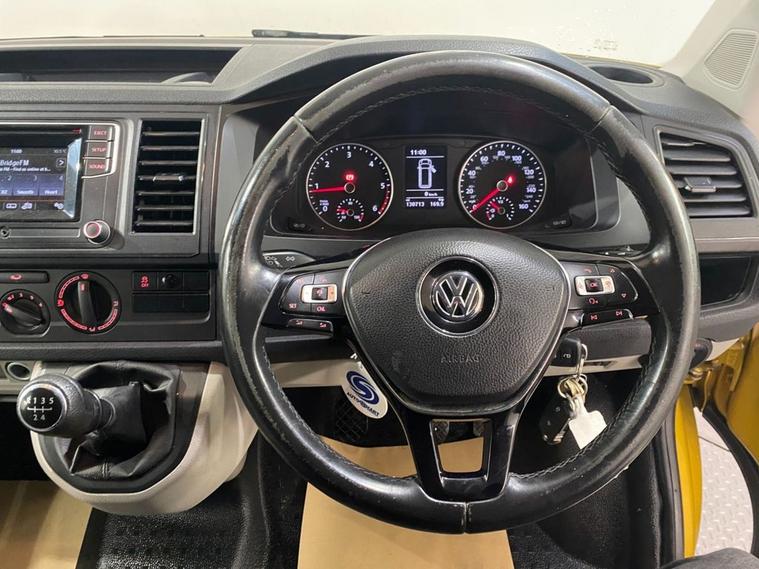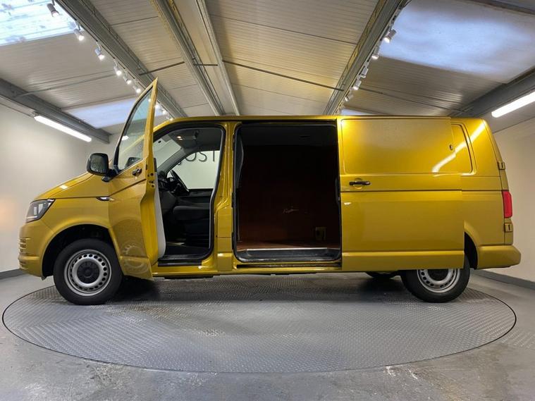 Whether youre looking to give your business real impact or are searching for an eye-catching van as a camper conversion project, this superb VW Transporter has got you covered ! Fully colour coded in Turmeric Yellow metallic its guaranteed to turn heads wherever you go. Up front theres clean and comfortable seating for three with plenty of head and leg room. Being the LWB model the cargo area is huge and benefits from full ply lining, a nearside sliding door and twin barn style doors at the rear. Its a nicely equipped model too that features a touchscreen media system with DAB radio, Bluetooth connectivity and USB input. The leather multi-function steering wheel offers safe and easy access to cruise, audio and telephone controls and theres also electric windows / mirrors together with rear parking sensors.