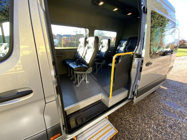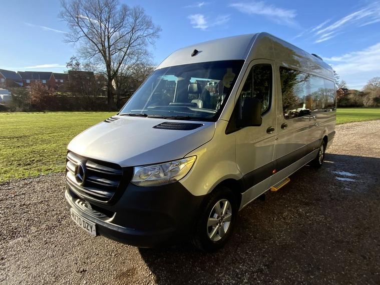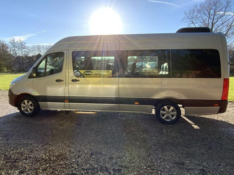 MERCEDES SPRINTER 314 CDI 7-G TRONIC AUTO GEARBOX, LUXURY EXECUTIVE BUS EX ST.ANDREWS TOUR BUS, 9 BLACK RUFFLED LEATHER EXECUTIVE STYLE SEATS, AIRCON, CRUISE CONTROL, REAR HEATING, BLUETOOTH, ELECTRIC PACK, REMOTE CENTRAL LOCKING, KEYLESS -GO, PRIVACY REAR WINDOWS, LARGE REAR HEATED LUGGAGE AREA FULLY LINED, SIDE LOADING DOOR WITH ELECTRIC SIDE STEP, PICNIC FOLD DOWN TABLES, BLUE LED FLOOR LIGHTING, IDEAL FOR TOURS/AIRPORT RUNS, METALLIC SILVER, ALLOYS, SIDE ENTRY STEP, AUTO 7-G GEARBOX, THE ULTIMATE LOW MILAGE EXECUTIVE BUS, WARRANTED LOW MILAGE ONLY 42875 MILES WITH FULL DEALER FACILITIES, PX CHANGE AND LOW RATE FINANCE AVAILABLE WITH NO DEPOSIT TO PAY, BEST PX CHANGE PRICES PAID WITH INSTANT DECISION, NATIONWIDE DELIVERY AVAILABLE TEL 01376624029