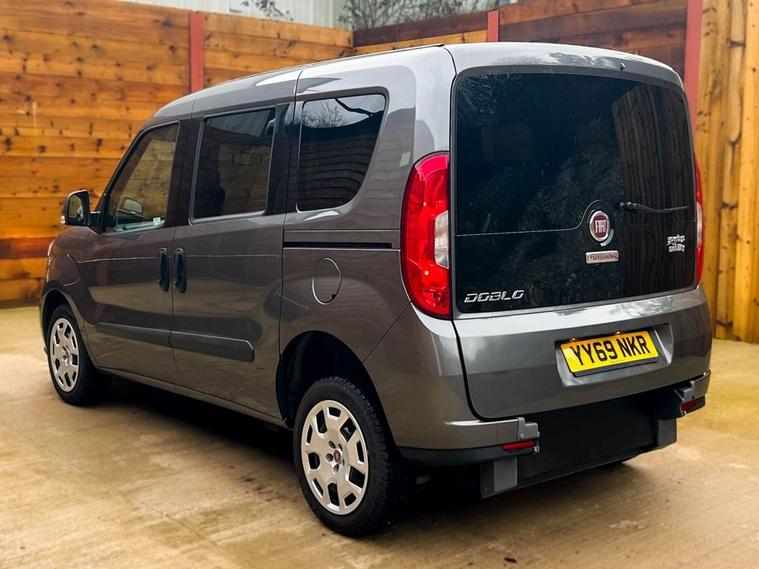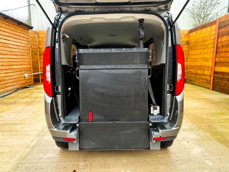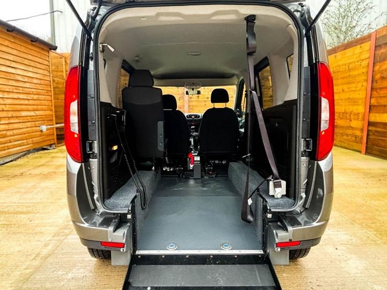 This Gowrings Mobility converted Fiat Doblo Wheelchair Accessible Vehicle (WAV) has 3 Seats (2 Front and 1 Rear). Equipment includes Wheelchair Ramp, Electric Winch, Air Conditioning, Electric Front Windows, Electric Adjustable Wing Mirrors, Power Steering, Remote Central Locking, Tinted Rear Windows.