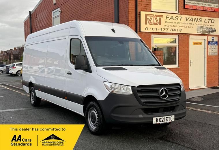 Mercedes Sprinter 315 CDI, Euro 6, Progressive, LWB, High Roof, 2021 21 Reg, 103 000 Miles (Warranted), Cruise Control, Multi-Functional Steering, On Board Computer, Bluetooth Telephone Kit, 150 BHP, 3 Seater Cab, Side Loading Door, Central Locking, Electric Windows, 6 Speed, Power Assisted Steering, Immobiliser, Apple Car Play, DAB Radio, Drivers Airbag, Head Restraints, Height Adjustable Drivers Seat, Cloth Seat Trim, Factory Fitted Steel bulkhead, Ply lined, ESP, ABS, Traction Control.