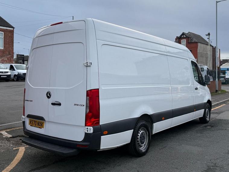Mercedes Sprinter 315 CDI, Euro 6, Progressive, LWB, High Roof, 2021 70 Reg, 141 000 Miles (Warranted), Cruise Control, Multi-Functional Steering, On Board Computer, Bluetooth Telephone Kit, 150 BHP, 3 Seater Cab, Side Loading Door, Central Locking, Electric Windows, 6 Speed, Power Assisted Steering, Immobiliser, Apple Car Play, DAB Radio, Drivers Airbag, Head Restraints, Height Adjustable Drivers Seat, Cloth Seat Trim, Factory Fitted Steel bulkhead, Ply lined, ESP, ABS, Traction Control.