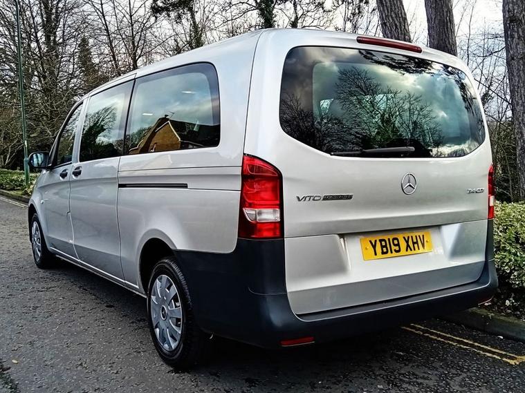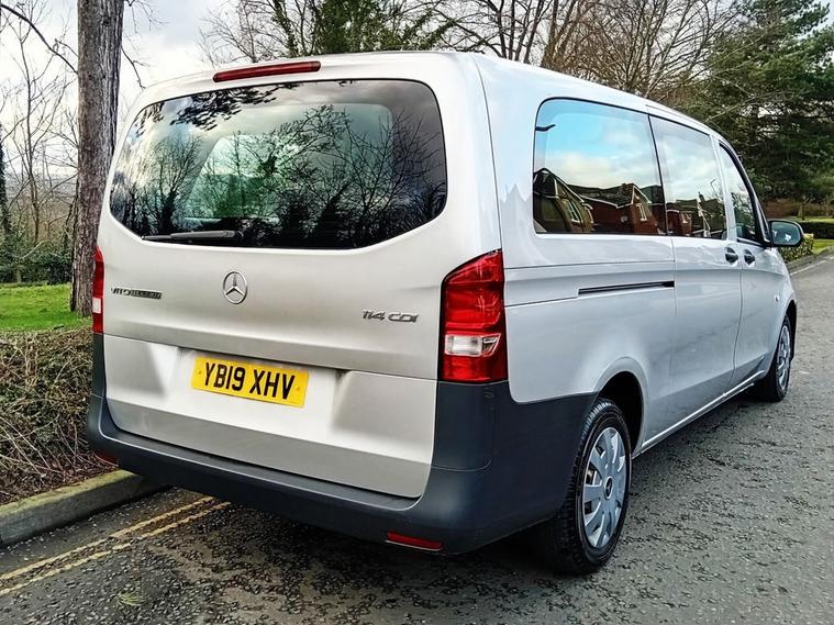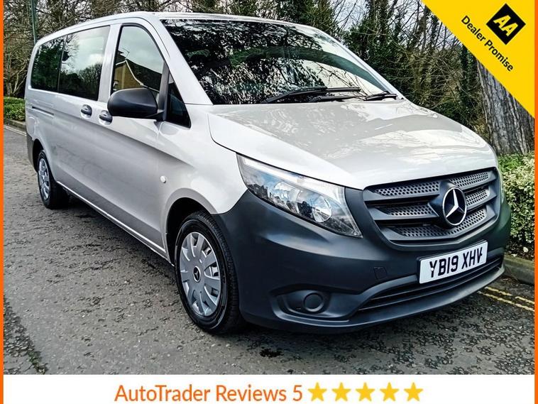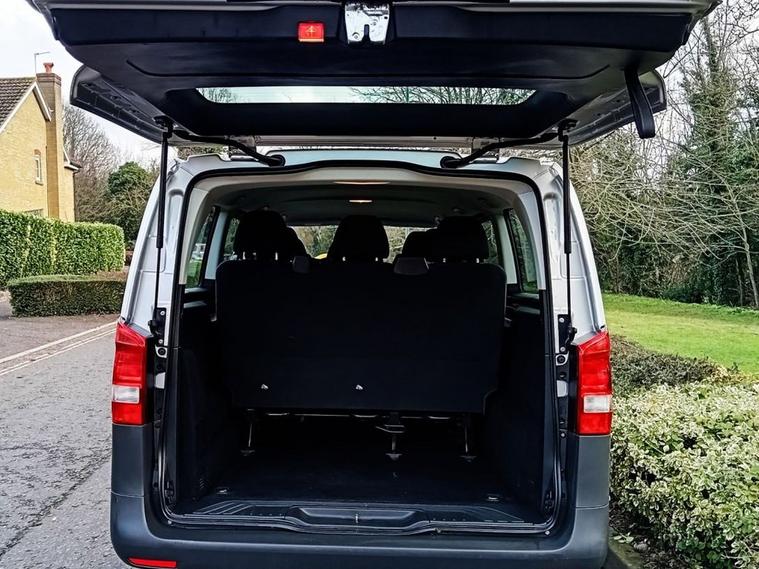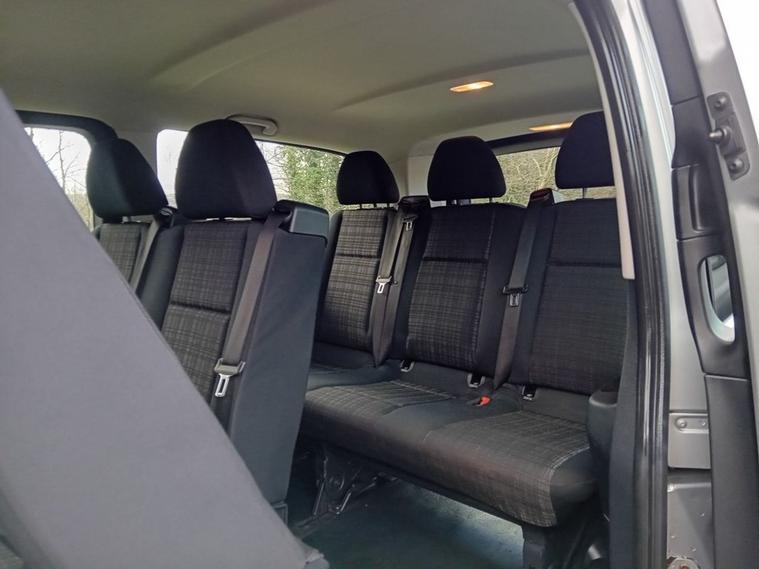 Nine Seats Extra Long Wheelbase Automatic Gearbox Bluetooth Connectivity - Audio Streaming Air Conditioning SPEEDTRONIC Cruise Control 5.8in TFT Colour Display ABS - Anti-Lock Braking System ASR - Anti-Slip Regulation ATTENTION Assist Adaptive Brake Lamps Adaptive ESP - Electronic Stability Programme Airbag - Driver Airbag - Front Passenger Airbags - Thorax Sidebags for Driver and Passenger Airbags - Window Audio 15 Aux-in Socket BAS - Brake Assist Battery - Uprated to 95Ah Bluetooth Interface for Hands-Free Telephone Cleaning Fluid Level Warning Light Crosswind Assist Daytime Running Lights Door Mirrors - Electrically Adjustable and Heated Doors - Twin Sliding Side - Glazed Drivers Seat - Height-Adjustable EBV - Electronic Brakeforce Distribution Electric Parking Brake Electric Windows - Front Gear Shift Trimmed in Leather Handle for Entrance Headlights - Halogen Heating - Electrical Auxiliary Demister Heating Elements Heating-Cooling Air Duct to Passenger Compartment High Level Third Brake Light Hill Start Assist Illuminated Glove Compartment Immobiliser Live Traffic Information Lockable Glove Compartment Outside Temperature Display Plastic Flooring Power-Assisted Steering RDS Radio Rear Seat Mounts with Quick-Release System Remote Central Locking Rescue Assist Sticker with QR Code Roof Panelling and Interior Panelling in Superior Quality SD Memory Card Slot Seat - Passenger Height-Adjustable Seat Belt Reminder - Front Seats - 3-Person Bench Row 1 Seats - 3-Person Bench Row 2 Service Indicator ASSYST Single Passenger Seat Spare Wheel - Steel Speedtronic Variable Speed Limiter Steering Wheel - Multi-Function Steering Wheel - Rake and Reach Adjustment Sun Visors with Illuminated Vanity Mirrors Suspension - Comfort Tailgate with Window Telephone Keypad Trip Computer Tyre Pressure Monitoring System USB Port Warning Lights for Oil Level - Coolant Level - Brake Fluid - Brake Pads - Bulb Failure and Door Closure Weight variant - uprating to 3050kg GVW Windows - Fixed in Rear Quarter Windows - Glazed Rear Doors with Rear Window Heater and Wash-Wipe System Windows - Left Side Sliding Door - Fixed Windows - Right Side Sliding Door - Fixed Windows - Tinted Glass in all Factory Fitted Glazing iPod Interface