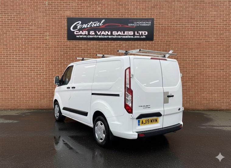 May 2019 Ford Transit Custom Trend 130PS Eco Blue L1 H1 Euro 6. This example has had the same owner from brand new and has been regularly serviced with service history present. The van is Euro 6 ULEZ complaint so no clean air zone charges are applicable. Being the Trend model the Transit has a super high specification with lots of modern tech factory fitted such as HDD Satellite Navigation, front & rear parking sensors, air conditioning, expensive heavy duty internal racking, power fold heated mirrors, remote central locking, side loading door, 270 rear doors, color coded bumpers, mirrors, security locks, 3 seater cab, on board computer, heated seats, heated windscreen, cruise control, multi function smart steering wheel, mobile apps, auto lights, Bluetooth, multiple airbags, DRL, front fog lights, This is the bigger 130PS model with the 6 speed manual transmission so the van is very fuel efficient yet offering great performance.
