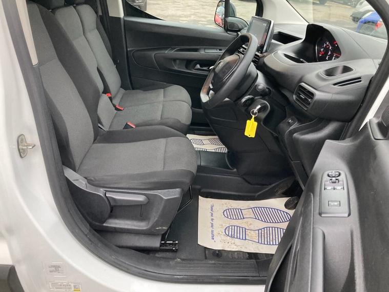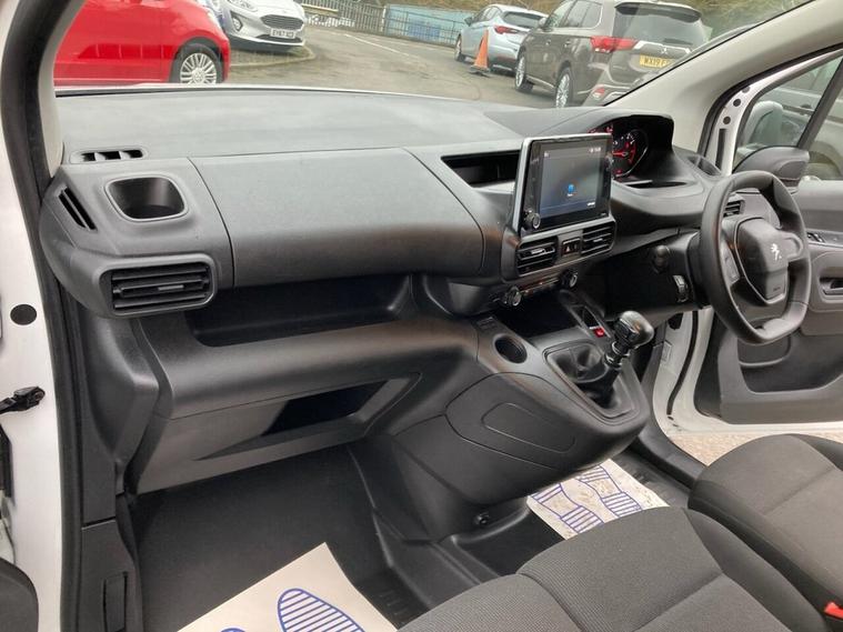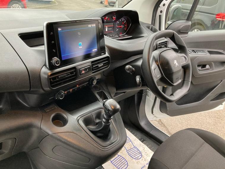 This 2022 Peugeot Partner van boasts an exceptional provenance, having been owned by only one careful owner and featuring a full service history with its last service completed on 28 January 2025 at 22, 752 miles. This 1.5 BlueHDi 1000 Professional Premium Standard Panel Van SWB Euro 6 5dr is a 5 door model with a 1.5 litre diesel engine and a very low mileage of just 31, 800 miles for its age. It comes with a 3 month warranty and a 12 month MOT provided on purchase. Notable features include height adjustable halogen headlights with automatic illumination and daytime running lights, an 8in capacitive colour touchscreen with DAB radio, Bluetooth handsfree and USB socket, rear parking sensors, and the PEUGEOT i-Cockpit with head-up display and compact steering wheel. Air conditioning is also included for driver comfort. The highlights of this Peugeot Partner demonstrate its superior offering compared to similar vehicles. It achieves an impressive fuel economy of 56 mpg, making it an economical choice for your business needs. Furthermore, it boasts low CO2 emissions, contributing to a more environmentally friendly operation. With a generous cargo volume of 3900 litres, this van provides ample space for all your equipment and deliveries, making it a practical and efficient workhorse.