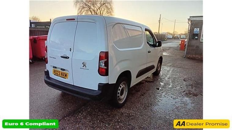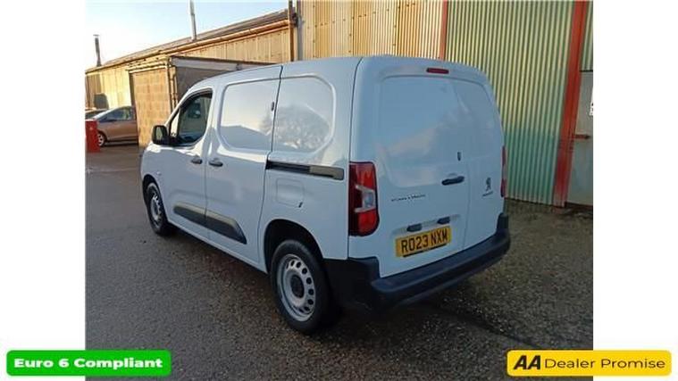 Boasting exceptionally low mileage for its age, this 2023 Peugeot Partner presents a superb ownership opportunity with only one previous owner. This BlueHDi 1000 Professional Premium + Standard Panel Van SWB Euro 6 (s/s) 5dr is powered by an efficient 1.5L Diesel Engine delivering 102 bhp and meets Euro 6 emissions standards. It comes with a comprehensive full service history, with the last service completed on 2024-12-18 at 13866 miles. A 12 month MOT will be provided on purchase, and the vehicle is covered by a 3 month warranty for your peace of mind. Notable features include air conditioning, automatic halogen headlights with daytime running lights, and an 8in capacitive colour touchscreen with DAB radio, Bluetooth handsfree, and USB socket, all enhanced by seamless Apple CarPlay and Android Auto integration. This Peugeot Partner stands out with its impressive fuel economy, achieving a remarkable 57 mpg, which is significantly better than many other vehicles in its class. Its low CO2 emissions further contribute to its economical and environmentally conscious performance. With a very low mileage of just 23400 miles, this van has been exceptionally well cared for, making it a highly attractive option for anyone seeking reliability and efficiency in a commercial vehicle.
