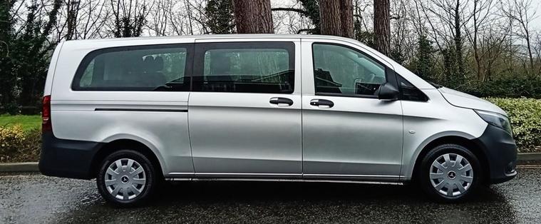 Nine Seats Extra Long Wheelbase OVER 70 MINIBUSES IN STOCK NATIONWIDE DELIVERY AVAILABLE Air Conditioning SPEEDTRONIC Cruise Control Bluetooth Connectivity - Audio Streaming 5.8in TFT Colour Display ABS - Anti-Lock Braking System ASR - Anti-Slip Regulation ATTENTION Assist Adaptive Brake Lamps Adaptive ESP - Electronic Stability Programme Airbag - Driver Airbag - Front Passenger Airbags - Thorax Sidebags for Driver and Passenger Airbags - Window Audio 15 Aux-in Socket BAS - Brake Assist Battery - Uprated to 95Ah Bluetooth Interface for Hands-Free Telephone Cleaning Fluid Level Warning Light Crosswind Assist Daytime Running Lights Door Mirrors - Electrically Adjustable and Heated Doors - Twin Sliding Side - Glazed Drivers Seat - Height-Adjustable EBV - Electronic Brakeforce Distribution Electric Parking Brake Electric Windows - Front Gear Shift Trimmed in Leather Handle for Entrance Headlights - Halogen Heating - Electrical Auxiliary Demister Heating Elements Heating-Cooling Air Duct to Passenger Compartment High Level Third Brake Light Hill Start Assist Illuminated Glove Compartment Immobiliser Live Traffic Information Lockable Glove Compartment Outside Temperature Display Plastic Flooring Power-Assisted Steering RDS Radio Rear Seat Mounts with Quick-Release System Remote Central Locking Rescue Assist Sticker with QR Code Roof Panelling and Interior Panelling in Superior Quality SD Memory Card Slot Seat - Passenger Height-Adjustable Seat Belt Reminder - Front Seats - 3-Person Bench Row 1 Seats - 3-Person Bench Row 2 Service Indicator ASSYST Single Passenger Seat Spare Wheel - Steel Speedtronic Variable Speed Limiter Steering Wheel - Multi-Function Steering Wheel - Rake and Reach Adjustment Sun Visors with Illuminated Vanity Mirrors Suspension - Comfort Tailgate with Window Telephone Keypad Trip Computer Tyre Pressure Monitoring System USB Port Warning Lights for Oil Level - Coolant Level - Brake Fluid - Brake Pads - Bulb Failure and Door Closure Weight variant - uprating to 3050kg GVW Windows - Fixed in Rear Quarter Windows - Glazed Rear Doors with Rear Window Heater and Wash-Wipe System Windows - Left Side Sliding Door - Fixed Windows - Right Side Sliding Door - Fixed Windows - Tinted Glass in all Factory Fitted Glazing iPod Interface