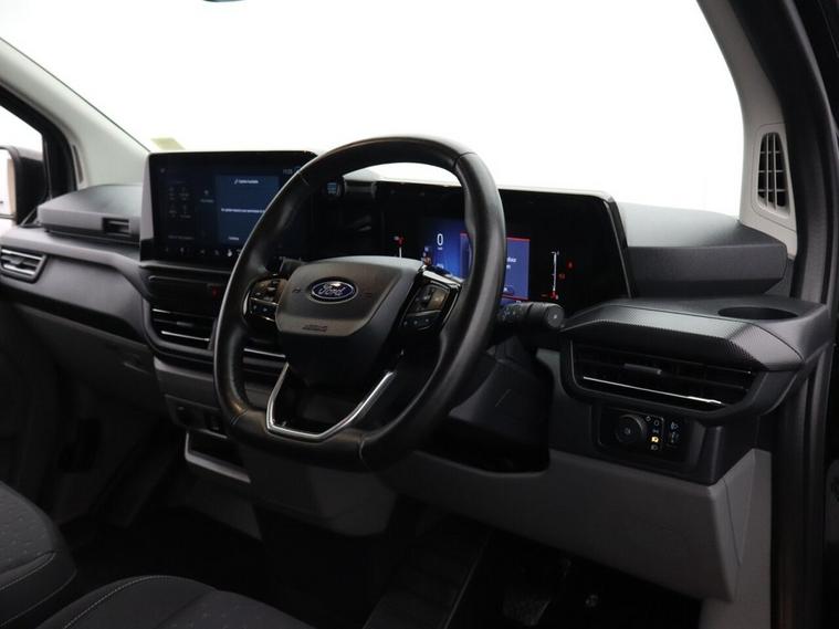 This 2023 Ford Transit Custom offers exceptional value with its very low mileage of just 19, 750 miles, having had only one owner from new. This 280 Limited derivative is powered by a 2.0 litre 134 bhp EcoBlue diesel engine, meeting Euro 6 emissions standards. It comes equipped with fixed DSS LED headlamps featuring auto high beam, keyless entry for convenience, and a comfort dual passenger seat pack with heated seats. The Transit Custom also boasts an automatic air conditioner for a pleasant cabin environment and a reversing camera pack, which includes front and rear parking sensors along with a rear camera, making manoeuvring easier. These features, combined with its low mileage and single owner history, demonstrate that this particular Transit Custom is a superior choice compared to other similar vehicles on the market.