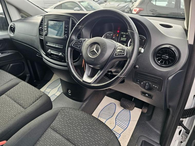This 2021 Mercedes-Benz Vito 116 CDI Progressive offers exceptional provenance, boasting a full service history with its last service completed on 03 July 2025 at 59, 937 miles, and it has had only one owner from new. This L3 Euro 6 compliant, rear-wheel drive model features a powerful 2.0 litre diesel engine producing 161 bhp, paired with a smooth G-Tronic automatic transmission. The Progressive trim level ensures a comfortable and connected driving experience, enhanced by the Audio 30 system which includes Android Auto, Apple CarPlay, and Bluetooth connectivity. For added convenience and safety, this Vito is equipped with a reversing camera and the Headlight Assistant, which automatically activates the headlights. With an impressive cargo volume of 6600 litres, this Vito is designed for practicality and efficiency, offering more space than many similar vehicles. The inclusion of a 12-month MOT on purchase and a 3-month warranty provides further peace of mind for the next owner. This well maintained and feature rich Mercedes-Benz Vito represents a reliable choice for any business or individual requiring a capable and versatile commercial vehicle.