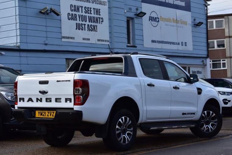 The Ford Ranger Wildtrak is a 2021 model, boasting a robust 2.0L Diesel Engine and a Four Wheel Drive drivetrain, making it an ideal choice for those who require a vehicle that can handle demanding terrain. This impressive pickup truck has been well-maintained by its sole owner, with a valid MOT until August 2026. The vehicle is equipped with a range of convenient features, including heated driver and passenger seats, rear parking sensors, a fixed rear view camera, and a dual control system with climate control. Additionally, the vehicle benefits from passive keyless entry and start, providing a hassle-free driving experience. The Ford Ranger Wildtrak is a powerhouse on the road, delivering 210 bhp of engine power, making it one of the most potent vehicles in its class. Its impressive towing capacity of 3500 kg means its well-suited for those who need to transport heavy loads. The vehicles Euro 6 emission class ensures a more environmentally friendly driving experience. With its 20 alloy wheels and body kits available, the Ranger Wildtrak is a stylish and capable vehicle thats sure to turn heads on the road. Its low mileage and single owner history make it a great choice for those seeking a reliable and well-cared-for vehicle.
