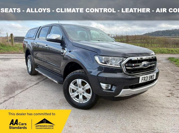 FORD RANGER 2.0 EcoBlue Limited Pickup Double Cab 4dr Diesel Manual 4WD Euro 6 (s/s) (170 ps) finished in Grey ** ONE OWNER FROM NEW ** This vehicle has 49, 603 miles, Serviced on 13k (Independant ), 37k (Ford ) & 49k (Ford) Specification Air Con, DAB, Sat Nav, Front & Rear Fog Lights, Climate Control, Heated Seats, Heated Screen, Traction Control, Active Brake Assist, Parking Sensors, Auto Lights & Wipers Includes Towbar with 3, 500 kg towing capacity, Rear Camera, Load Liner, Alloy wheels, Full leather interior, Cruise Control, A very clean example. * FREE 12 MONTHS AA BREAKDOWN COVER **Warranty packages from 3 months to 24 months.**** WE OFFER NATIONWIDE DELIVERY*** Supplied fully serviced ready to go! We are a family owned dealership that has been established for over 15 years, We can offer finance to suit all budgets, Nationwide delivery service, For a walkaround video please call and we will be happy to help! Tel: 01264506347 dealer's website DELIVERY AVAILABLE NATIONWIDE