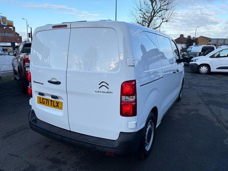 This 2022 Citroen Dispatch boasts an exceptionally low mileage for its age, having covered just 31, 500 miles, and comes with a full service history, with its last service completed on 2025-06-13 at 31, 869 miles. This Enterprise Pro M derivative, featuring a 1.5 litre BlueHDi diesel engine, is Euro 6 compliant and will be supplied with a 12 month MOT for your peace of mind. Inside, youll find comfort and convenience with Air Conditioning and a 7in Colour Touchscreen that includes Citroen Connect DAB Radio, Android Auto, Apple CarPlay, and Bluetooth connectivity. The Visibility Pack adds automatic headlights, enhancing your driving experience. The Citroen Dispatch stands out with its impressive fuel economy, achieving an excellent 46 miles per gallon, which indicates it is more economical than many similar vehicles. Furthermore, its low CO2 emissions highlight its environmental consideration. This combination of efficient performance, comprehensive service history, and desirable features makes this 2022 Citroen Dispatch a compelling choice for those seeking a reliable and well equipped van.
