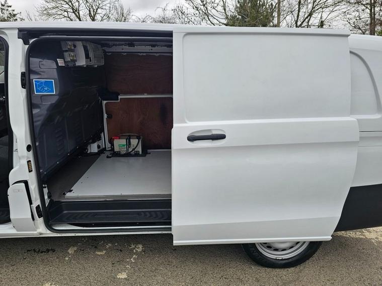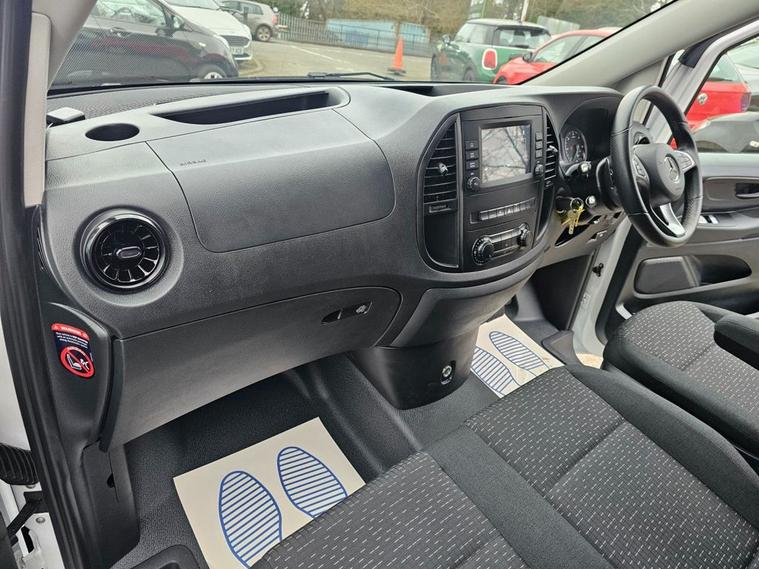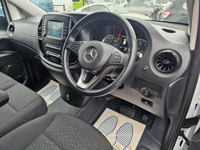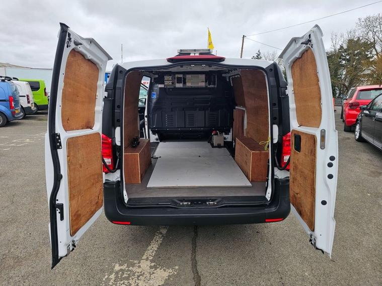 This 2022 Mercedes Benz Vito 116 CDI Progressive G-Tronic RWD L3 Euro 6 (s/s) 5dr (XLWB) boasts an exceptionally low mileage of just 36, 800 miles, making it a standout choice for its age. This one owner vehicle comes with a full service history, with its last service completed on 2025-11-17 at 36, 107 miles. It is equipped with a 2.0 litre diesel engine producing 161 bhp and meets Euro 6 emissions standards. For your peace of mind, a 3 month warranty is included, and 12 months MOT will be provided upon purchase. The Vito Progressive offers a substantial cargo volume of 6, 600 litres, demonstrating its superior capacity compared to similar vehicles. This generous space, combined with the vehicles powerful 161 bhp engine and efficient G-Tronic automatic transmission, ensures it is well equipped for a variety of demanding tasks. The L3 XLWB designation signifies its long wheelbase, further enhancing its load carrying capabilities and stability.