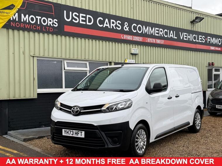 This 2023 Toyota ProAce Icon Medium Panel Van is a superb example, having had only one owner since new. This Euro 6 compliant 1.5 litre diesel van, registered in 2023, comes in the sought after Icon trim. It is equipped with a useful Parking Pack featuring rear parking assistance, manual air conditioning for your comfort, and Bluetooth connectivity for seamless calls and audio streaming. For those needing to tow, it includes a 13 pin trailer connector, and the Pro Touch Multimedia System offers Android Auto and Apple CarPlay integration. This ProAce van stands out with its impressive fuel economy, achieving up to 43 miles per gallon, which indicates it is more economical than many similar vehicles. Furthermore, its low CO2 emissions highlight its efficiency and environmental consideration. This combination of a single owner, excellent fuel economy, and low emissions makes this 2023 Toyota ProAce a practical and responsible choice for your business needs. FSH, 2 keys, HPI CLEAR, FINANCE AVAILABLE, LOW CREDIT SCORE! WE MAY STILL BE ABLE TO HELP , EXCELLENT EXTENDET AA WARRANTY OPTION, 12 MONTHS AA BREAKDOWN COVER INCLUDED DOMESTIC USE ONLY, ALL CARS - VANS ARE READY TO DRIVE AWAY, 5 DAY DRIVE AWAY INSURANCE AVAILABLE, RESERVE THIS VEHICLE EXCLUSIVELY FOR YOU SAFELY AND SECURELY AT dealer's website WITH FULLY REFUNDABLE £100.00 DEPOSIT. ACT FAST WONT HANG AROUND LONG!!!