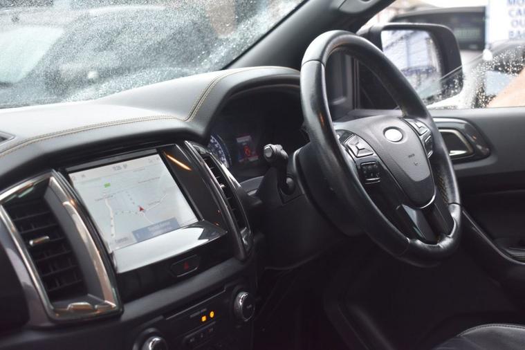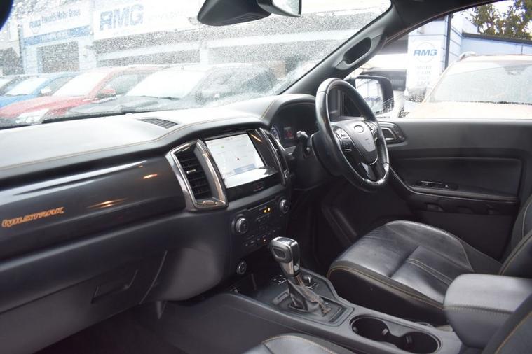 This 2020 Ford Ranger Wildtrak boasts an MOT valid until January 2027, offering excellent peace of mind. This Double Cab Pickup is presented in a desirable Wildtrak trim, featuring a striking Raptor style body kit and 20 inch alloy wheels. Under the bonnet lies a powerful 2.0 litre EcoBlue diesel engine, delivering an impressive 210 bhp and paired with a smooth automatic transmission. Its Four Wheel Drive system ensures capability in various conditions, while the Euro 6 emission class highlights its efficiency. This Ranger is also equipped with a trailer tow pack including a towbar, ready for towing up to 3500 kg, and comes with two keys. Further enhancing its appeal, this Ranger Wildtrak includes Bi-Xenon headlights for superior visibility, a leather wrapped steering wheel for a comfortable grip, and Electronic Stability Control alongside Traction Control for confident handling. The inclusion of an ICE pack suggests an enhanced audio experience. The vehicles low CO2 emissions are a notable advantage, indicating a more environmentally conscious choice compared to similar vehicles. This Ford Ranger is a well equipped and capable pickup designed for both work and leisure.