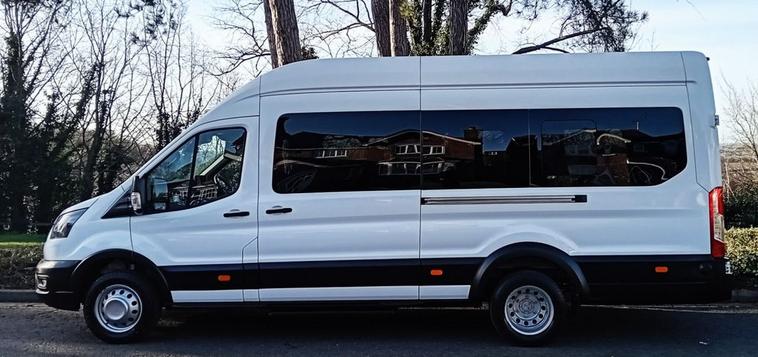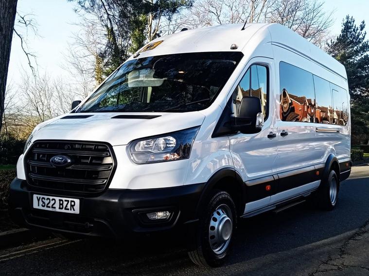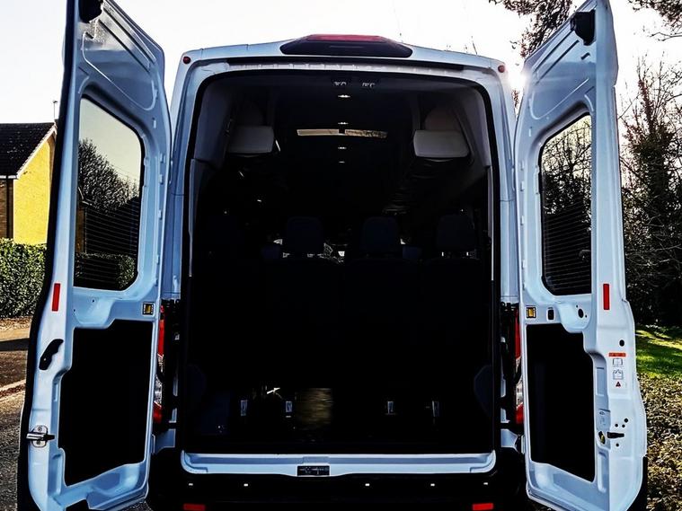 Seventeen Seats Air Conditioning OVER 70 MINIBUSES IN STOCK NATIONWIDE DELIVERY AVAILABLE Ford SYNC with 4.2in TFT Screen Bluetooth Lane Keeping Alert 16in Steel Wheels 270 Degree Rear Cargo Door with Magnetic Retention 4-way Adjustable Drivers Seat with Armrest ABS - Anti-lock Braking System ACC - Adaptive Cruise Control with Forward Alert Airbag - Front Passengers with Deactivation Switch Airbags - Driver Automatic Rain Sensing Wipers Battery - Cold Start -20 Degree C Battery - Twin Improved Flooded - IF Bodyside Mouldings - Wide - Self Colour Bottle Holder - Twin 2 litre Bottle Capacity - Facia-Mounted Bumper - Front Body Colour - Partial Courtesy Lights - Front and Rear Lights and Map-Reading Lights with Theatre-Style Dimming Curve Control Daytime Running Lamps Doors - Glazed Passengers Sliding Side Load Door Fitted with Emergency Release Hammer Dual Front Passenger Seat EBA - Emergency Brake Assist EDCC - Electronic Dynamic Cornering Control EPAS - Electric Power Assisted Steering ESP - Electronic Stability Programme Electrically-Operated Front Windows with One-shot Up-down on Drivers Side Emergency Brake Warning Floor Covering - Complete - Easy-clean and Rubber Insulated Fog Lights - Rear Ford Easy-Fuel Capless Refuelling System Front - Independent MacPherson Struts - Coil Springs - Stabiliser Bar and Gas-Pressurised Shock Absorbers - Rear - Leaf Springs and Gas-Pressurised Shock Absorbers Front Grille Gearshift Indicator Light Gearshift Knob - Moulded Glovebox - With Lid and A4 File Storage Capability Headlights - Automatic On-Off Headlights - Halogen Projector Headlights - Quad Beam Headliner - Complete - Covers Full Length of Vehicle Heated Front Windscreen Heater - PTC Heavy Duty Front Axle High Roof with Overhead Stowage Racks Hill Start Assist ICE Pack 17 Immobiliser - Safeguard Passive Anti-Theft System - PATS - Insurance-Approved Category 2 Immobiliser LAC - Load Adaptive Control Light Tinted Glass Locks - Auto Relocking - Doors Relock after 45 Seconds if no Door is Opened Locks - Key Operated Bonnet Release Locks - Power Central Locking Mudflaps - Rear Overhead Console Passenger Compartment Lights Power Point Socket - 2x 12V Power Step - Passengers Side Load Door Pre-Collision Assist with Pedestrian Detection with Lane Keeping Aid RSC - Roll Stability Control Rear 2-Way Head Restraint Rear Bumper - Self Colour with Integrated Step Rear Seats - Fifth Row - Dual Bench Seat and Single Seat Rear Seats - Fourth Row - Dual Bench Seat - Single Seat Rear Seats - M1 Standard - Adjustable Headrest Design Rear Seats - Second Row - Dual Seat Rear Seats - Sixth Row - Quad Bench Seat Rear Seats - Third Row - Dual Bench Seat - Single Seat Remote Central Locking Remote Central Locking with One Key Fob Seatbelts - 3 Point Diagonal Inertia Reel - All Seats Selectable Drive Mode Side Marker Lights Spare Wheel - Steel Standard Duty Alternator - 150amp Steering Column - Rake and Reach Adjustment Steering Wheel - 4 Spoke Leather Trimmed Storage - Drivers Side - Storage Compartment on Facia Top with Lift Up Lid Storage - Front Door Map Pockets Trip Computer Vehicle Identification Number - VIN - Visible Vehicle Maintenance Monitor Water in Fuel Filter with Sensor Windows - 2nd Row - Drivers Side Slide Opening Windows - Fixed 3rd Row Windows - Flip Opening 4th Row Windows - Rear-heated Windows - Second Row - Left Hand Side Fixed Wipers - Rear with Auto Reverse Wipe and Electrically-operated Wash