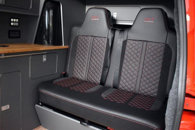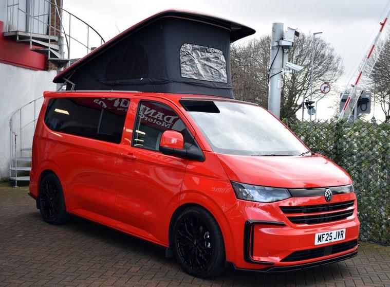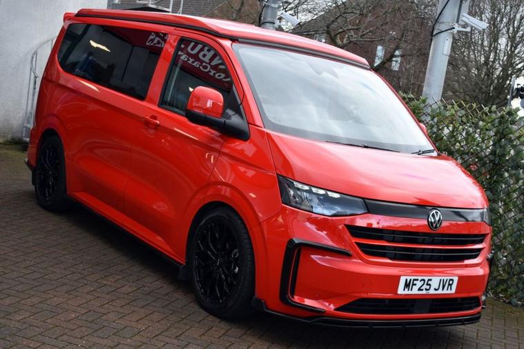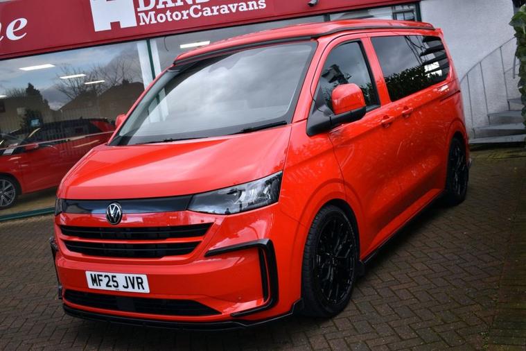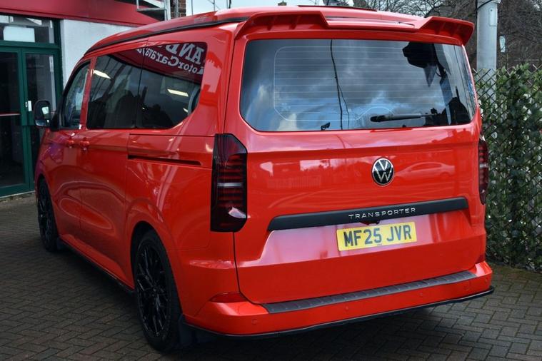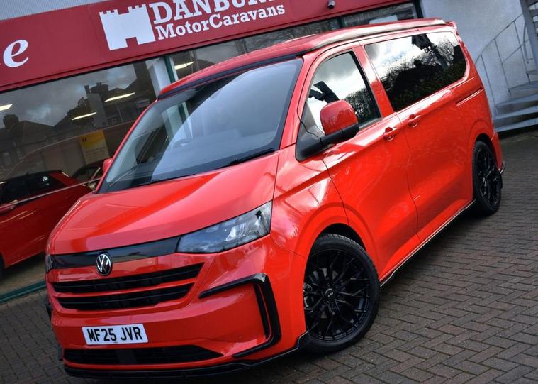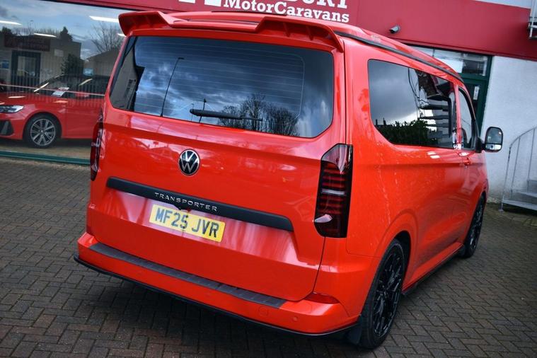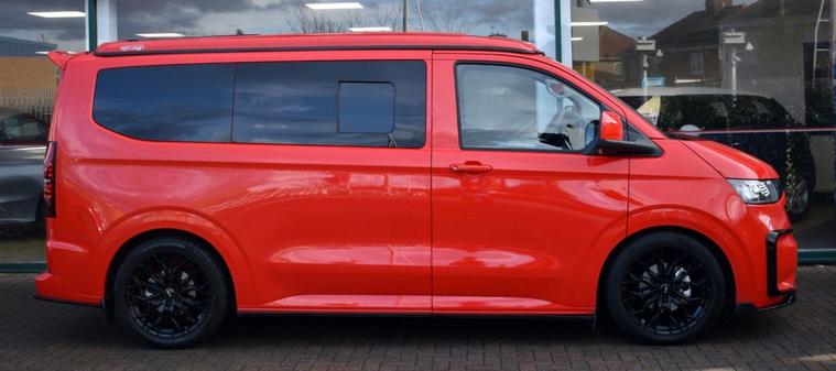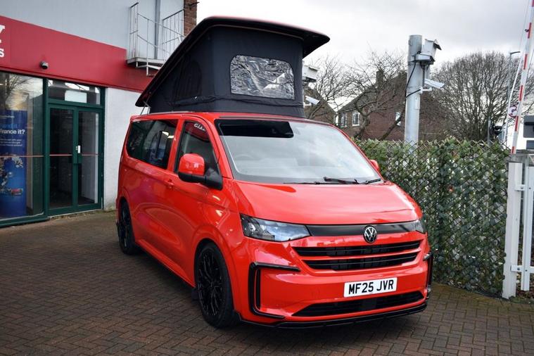 This has to be one of the most eye-catching 4-berth camper conversions on the market - its truly spectacular, converted by AVT Campers of Gloucester. The very latest Volkswagen Transporter model finished in Intensive Red with Black full custom leather and front Sports seats - the quality overall is exceptional. Viewing is absolutely essential too as even our DLSR camera does not do this vehicle justice. A monumental specification to include CTEK charging system, Vanshade thermal blinds, solar panel, 240v hook-up with smart charger, Autoterm diesel heater with comfort panel, fully insulated interior, West Dubs pop-top, twin hob stove, sink, microwave, 50L fridge freezer, swivelling passenger seat, front-splitter, rear roof spoiler, external BBQ point, smart bed system, heated front seats with folding armrests, heated windscreen, climate control, various charging points and plugs, wireless charging pad, bespoke wood flooring and worktop, 20 alloy wheels, front and rear park assist with rear camera, rear view mirror camera, various LED downlighting, touch-screen navigation, smartphone interface with Apple CarPlay/Android Auto, multi-function steering wheel with adaptive cruise control, electric folding door mirrors with blind-spot function, full LED headlight system with high-beam assist, LED tail lights and so much more - the list is endless. Carrying the balance of Volkswagen warranty until June 2028 or 100, 000 miles. Condition is AS NEW.